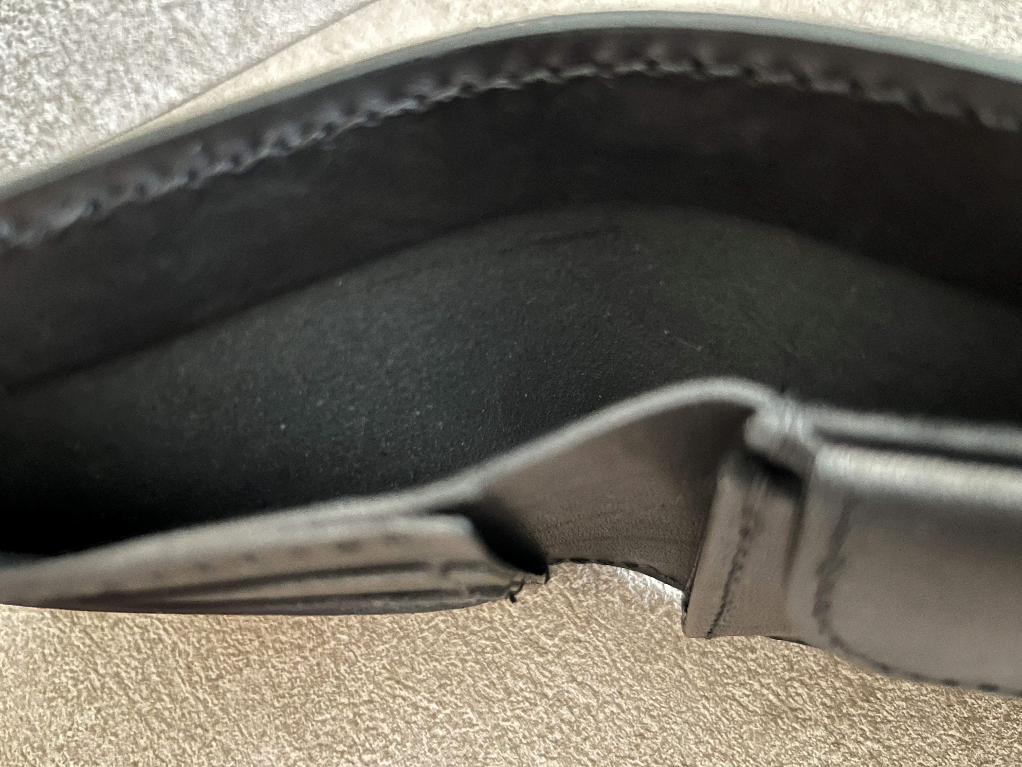 和紙のような手触りで張りのある硬めのイタリアンレザーの黒を使って、