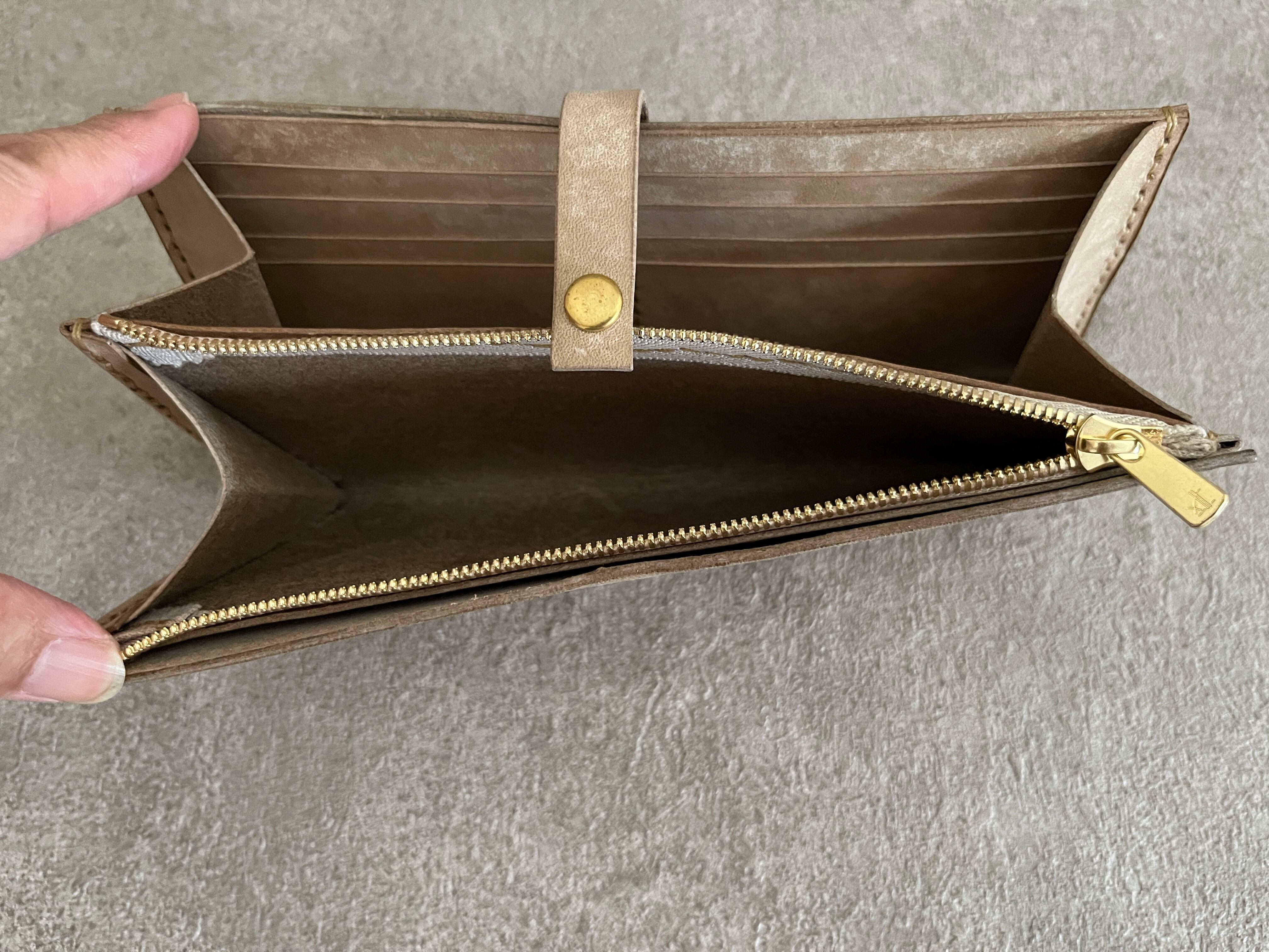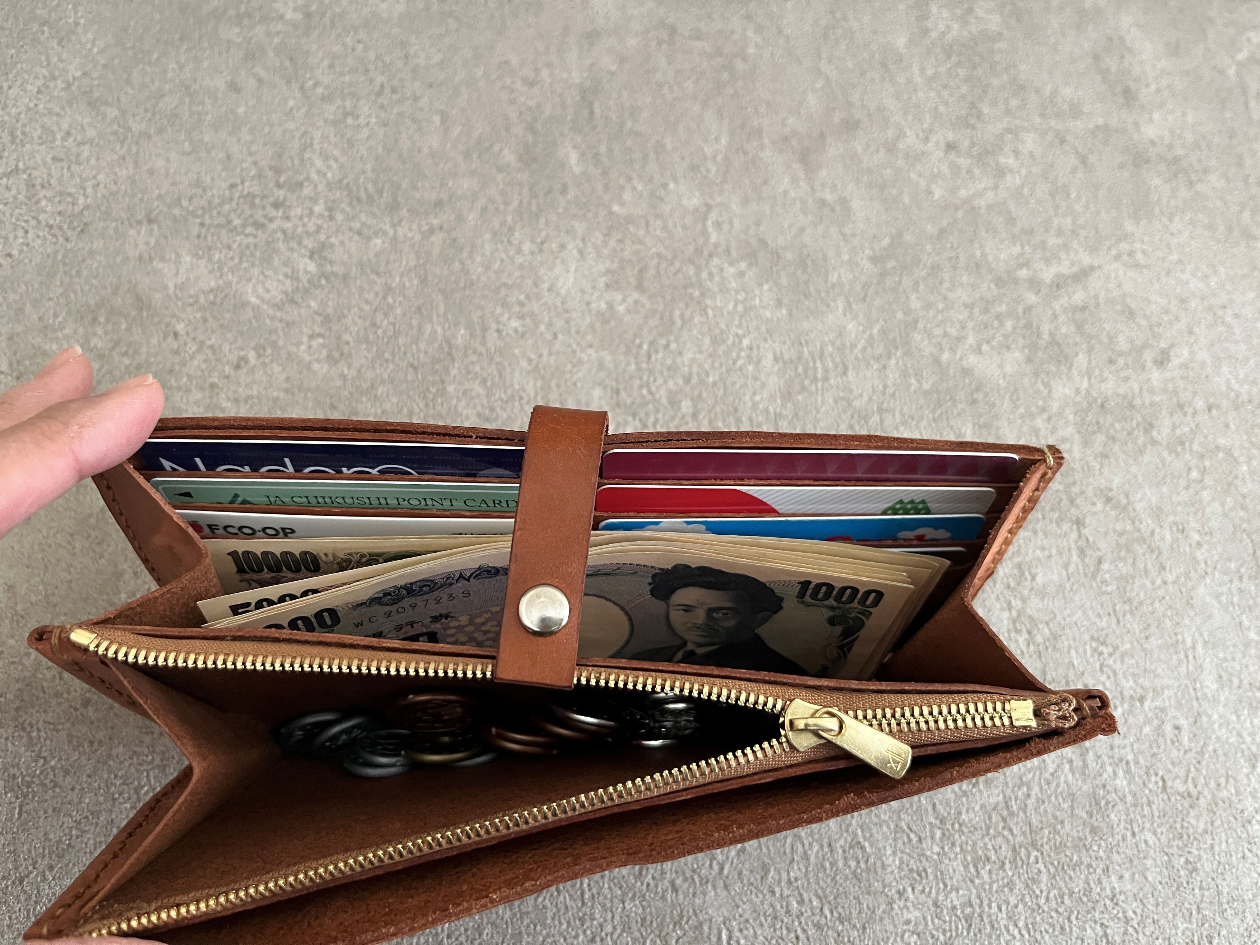 手縫いで作った薄くて軽い長財布です。