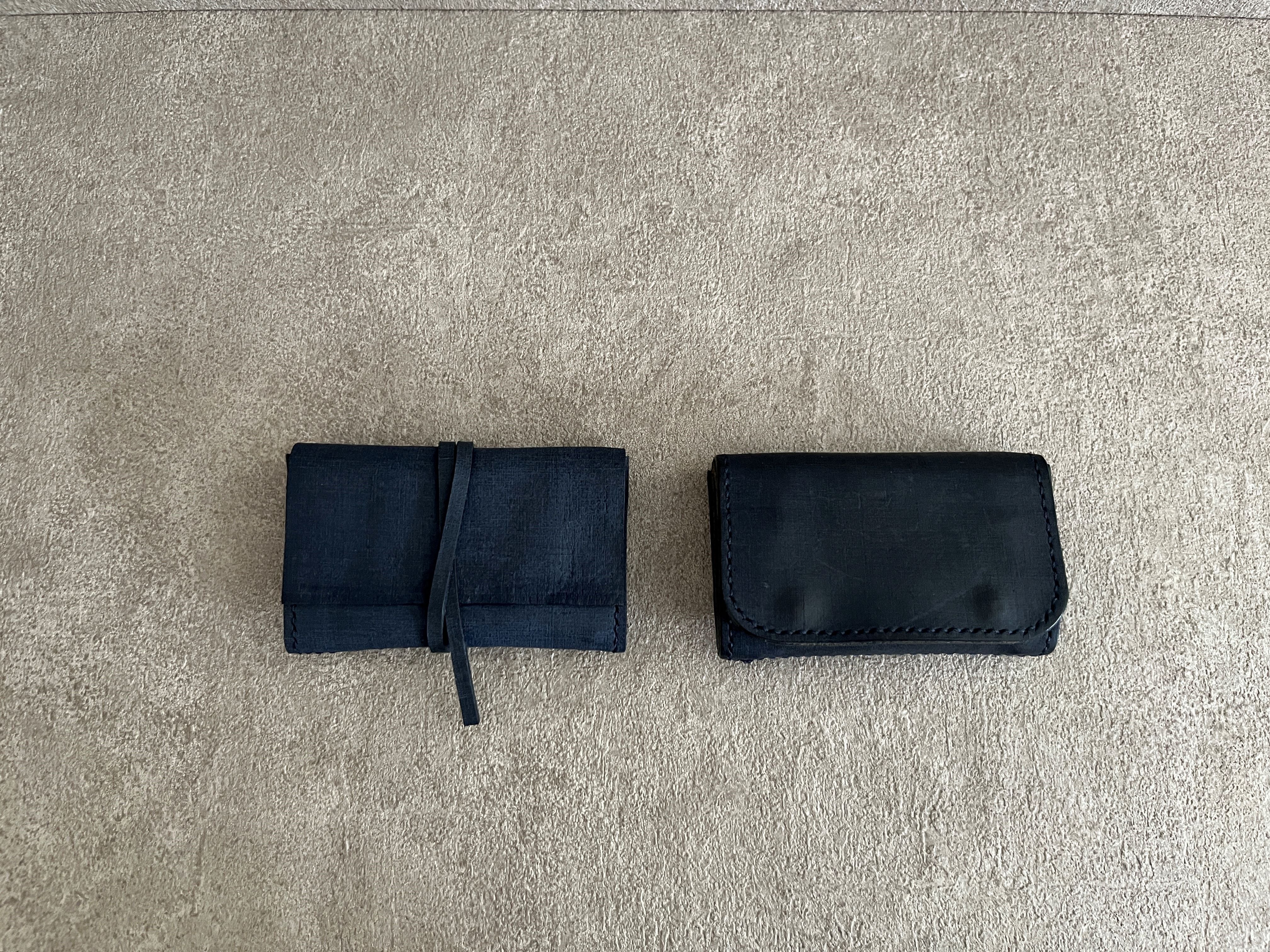 画像最後は同じレザーで作った二つ折り財布より少し小さめになります。