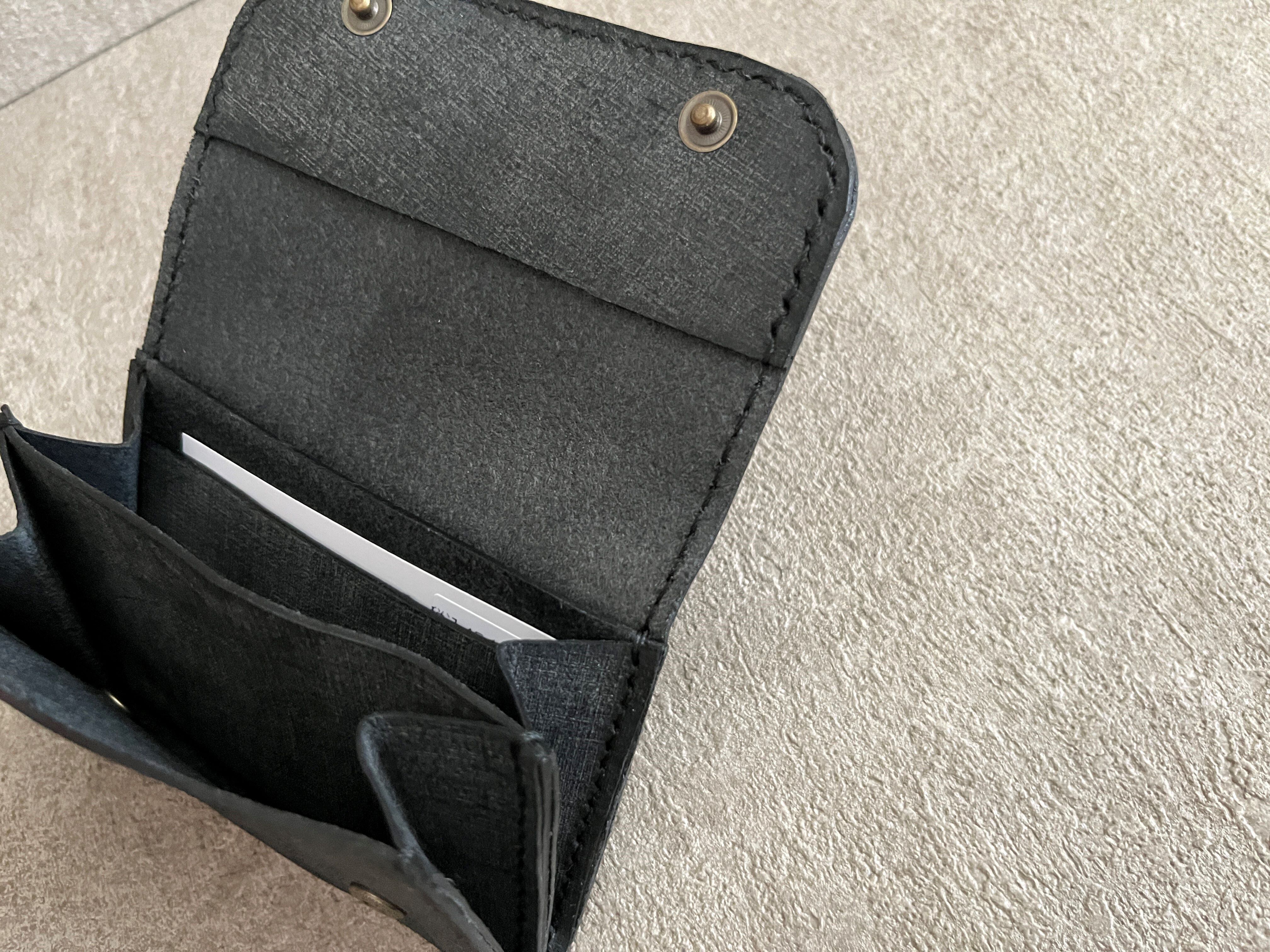 手縫いで作ったポケットに入るサイズのコンパクト財布です。