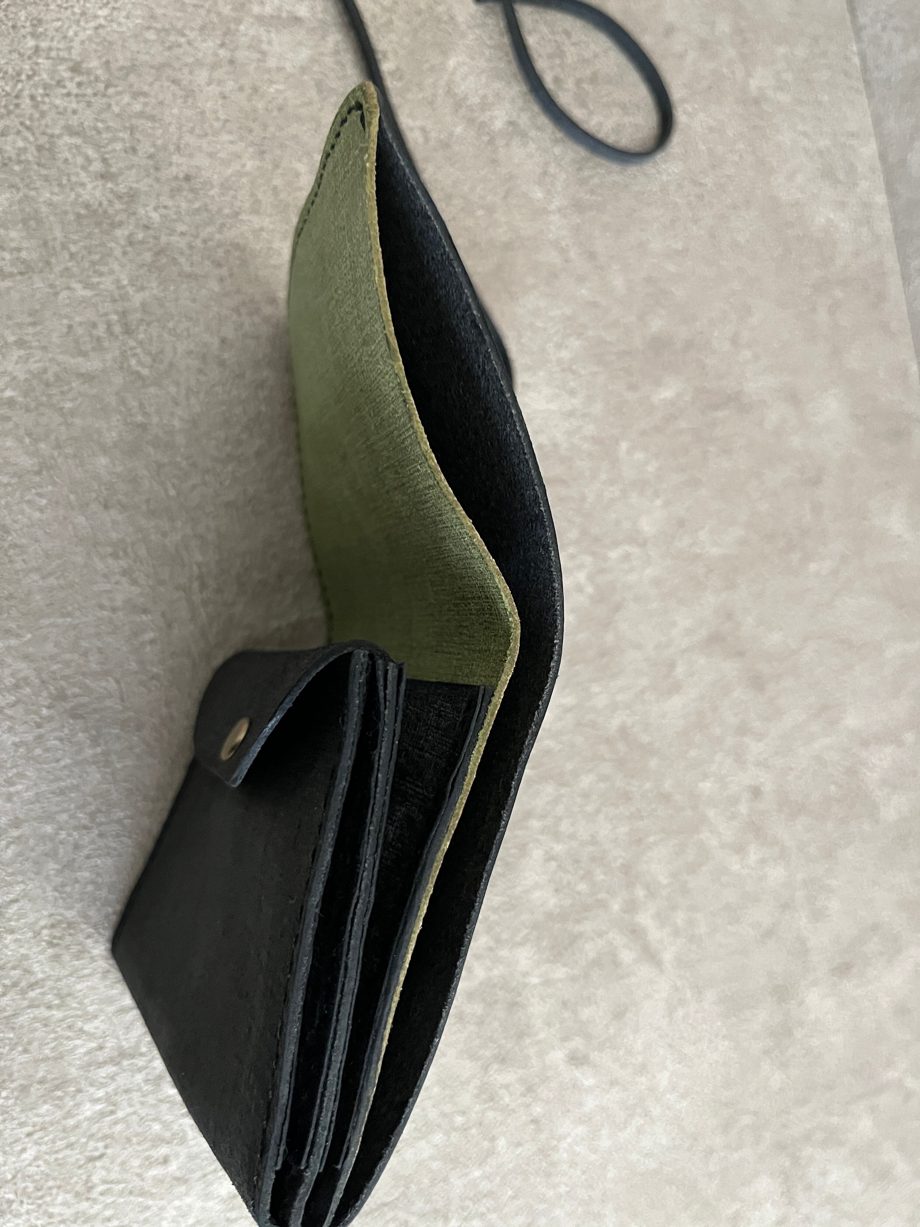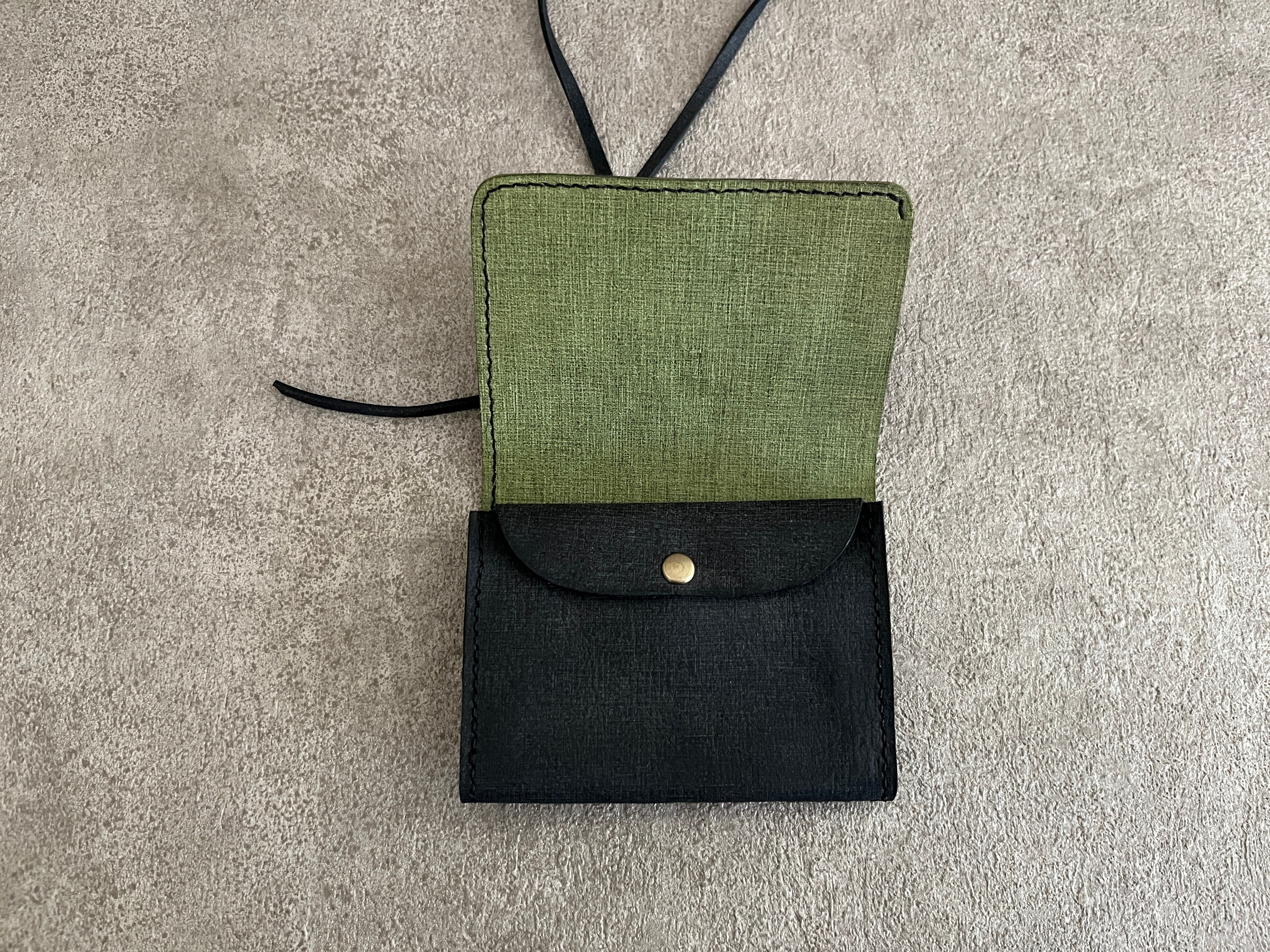 Bifold wallet black x pistachio (string) 二つ折り財布 黒×ピスタチオ(紐) <B>