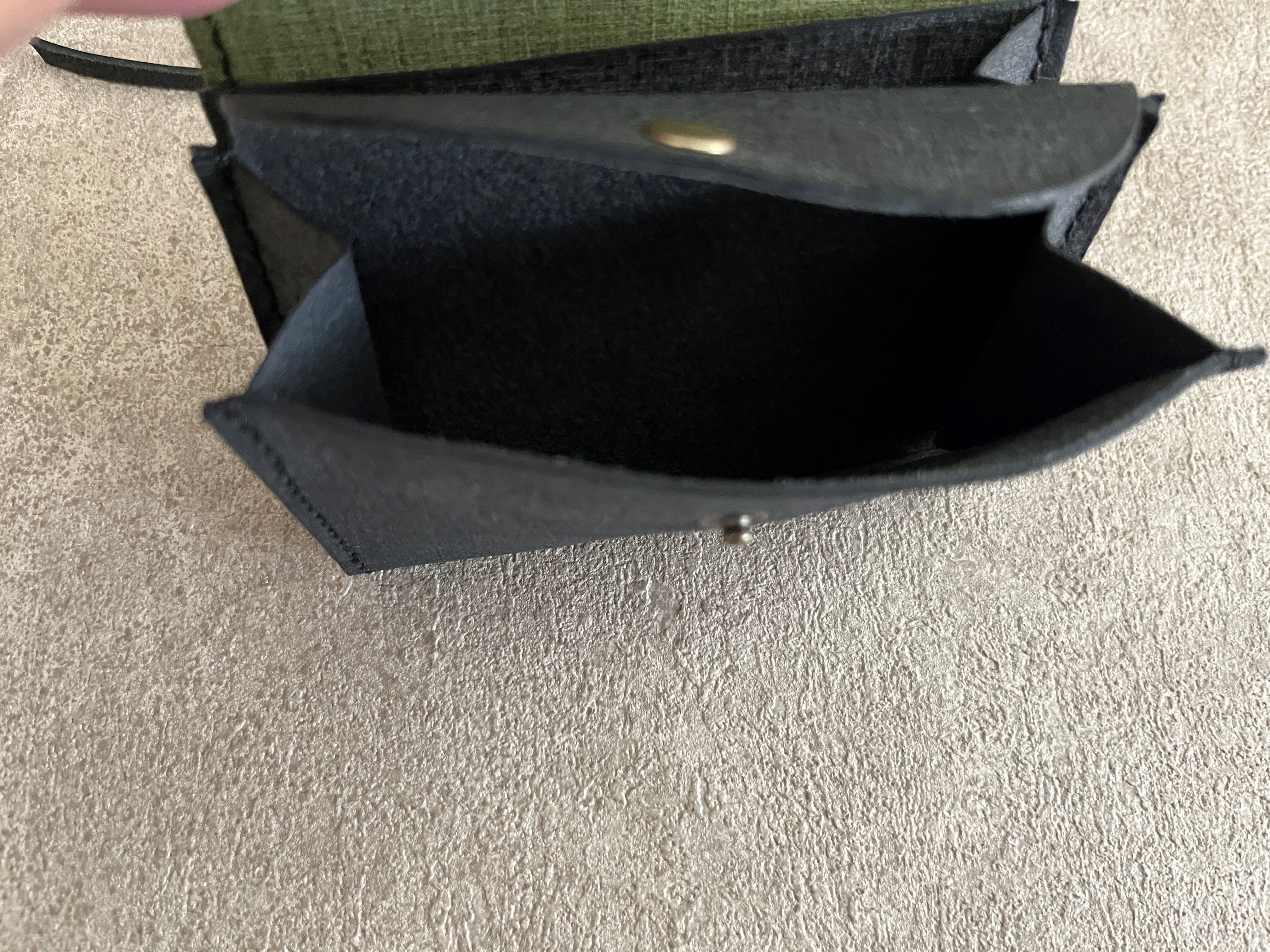 同じレザーで作ったコンパクト財布より少し大きめになります。