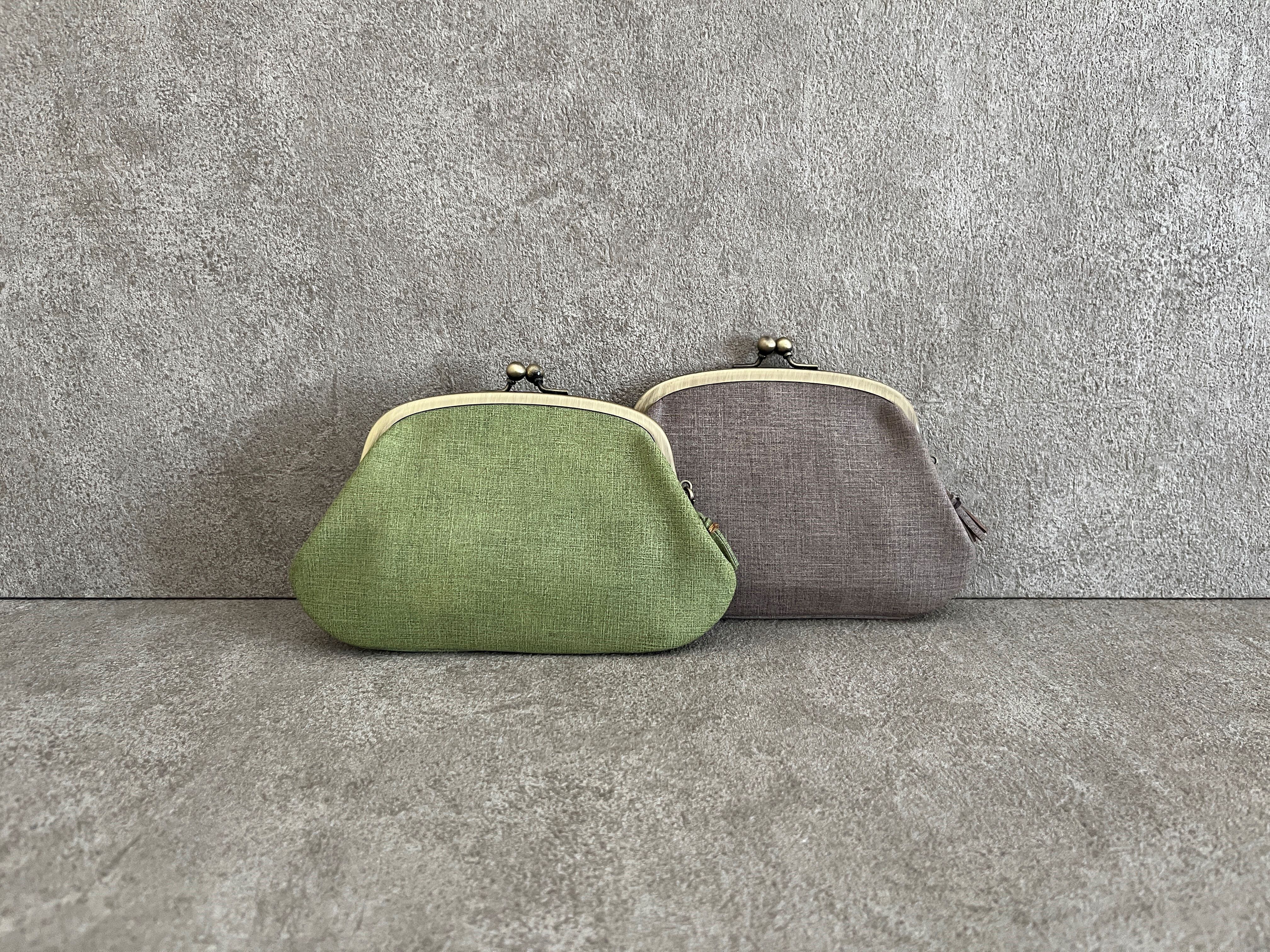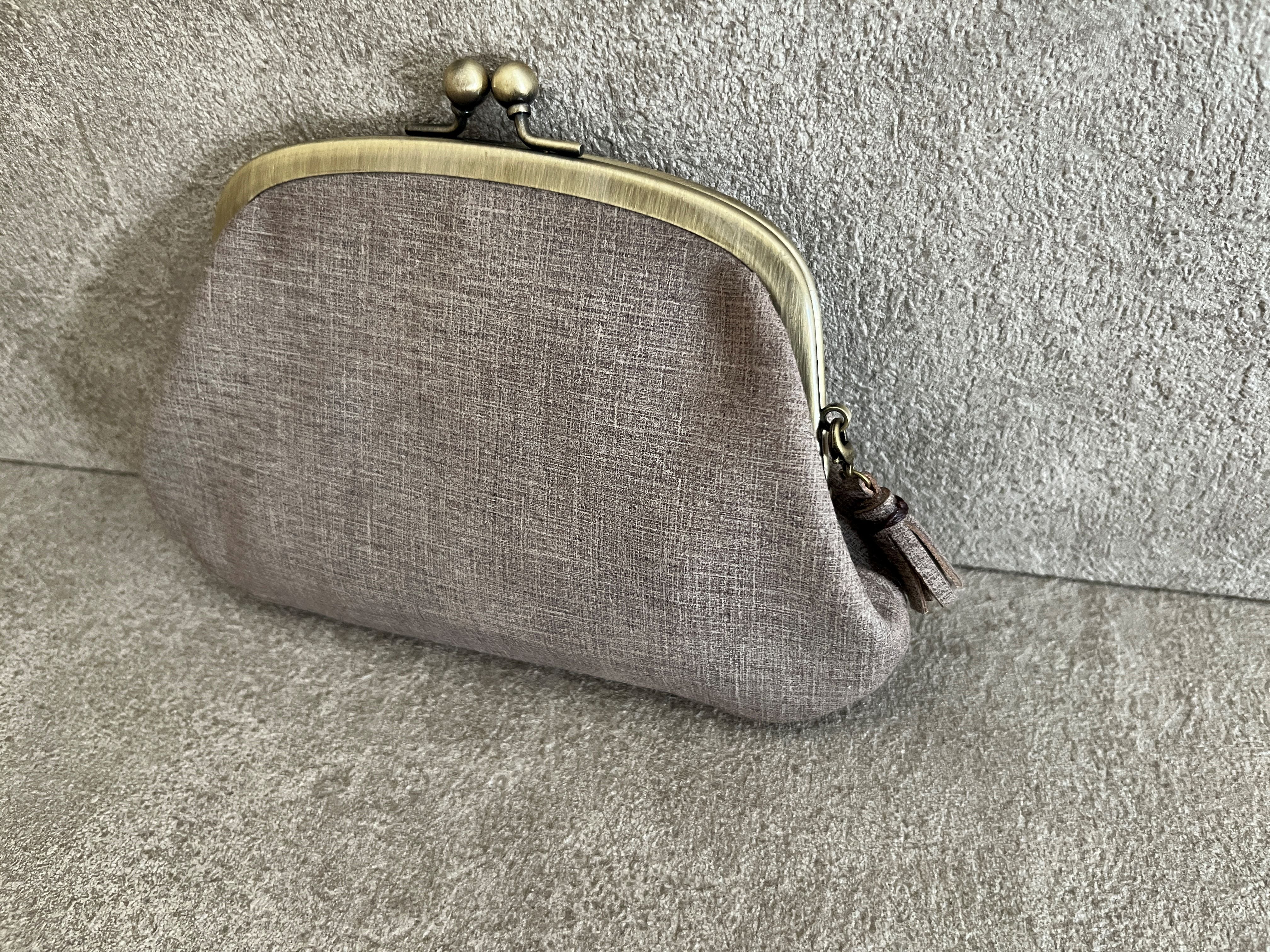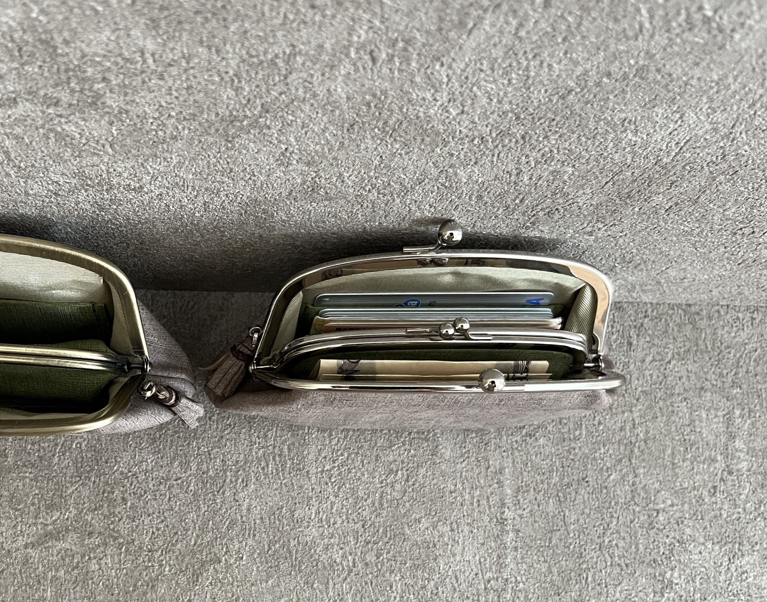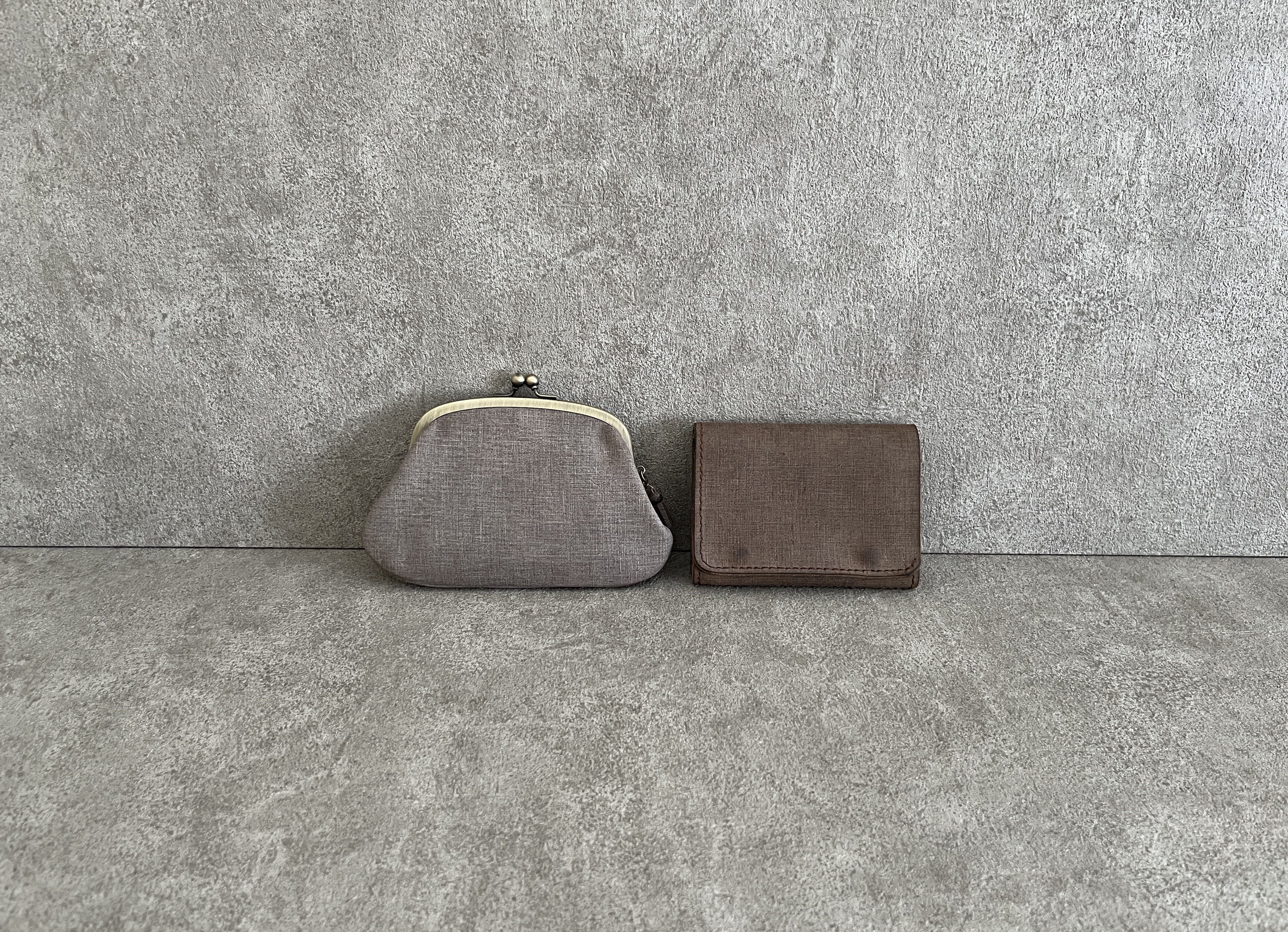 モカグレーを使って作った、親子がま口財布です。
