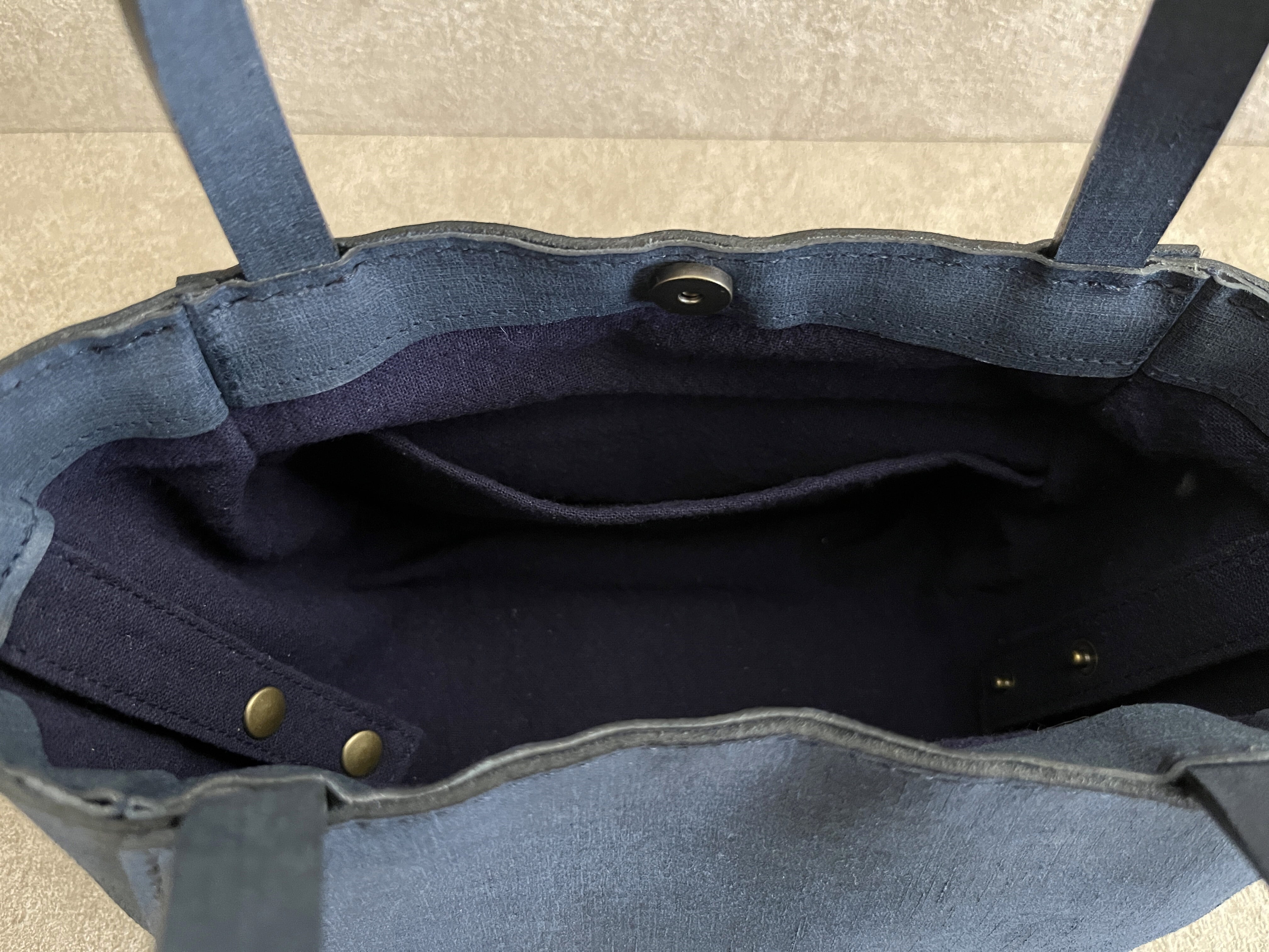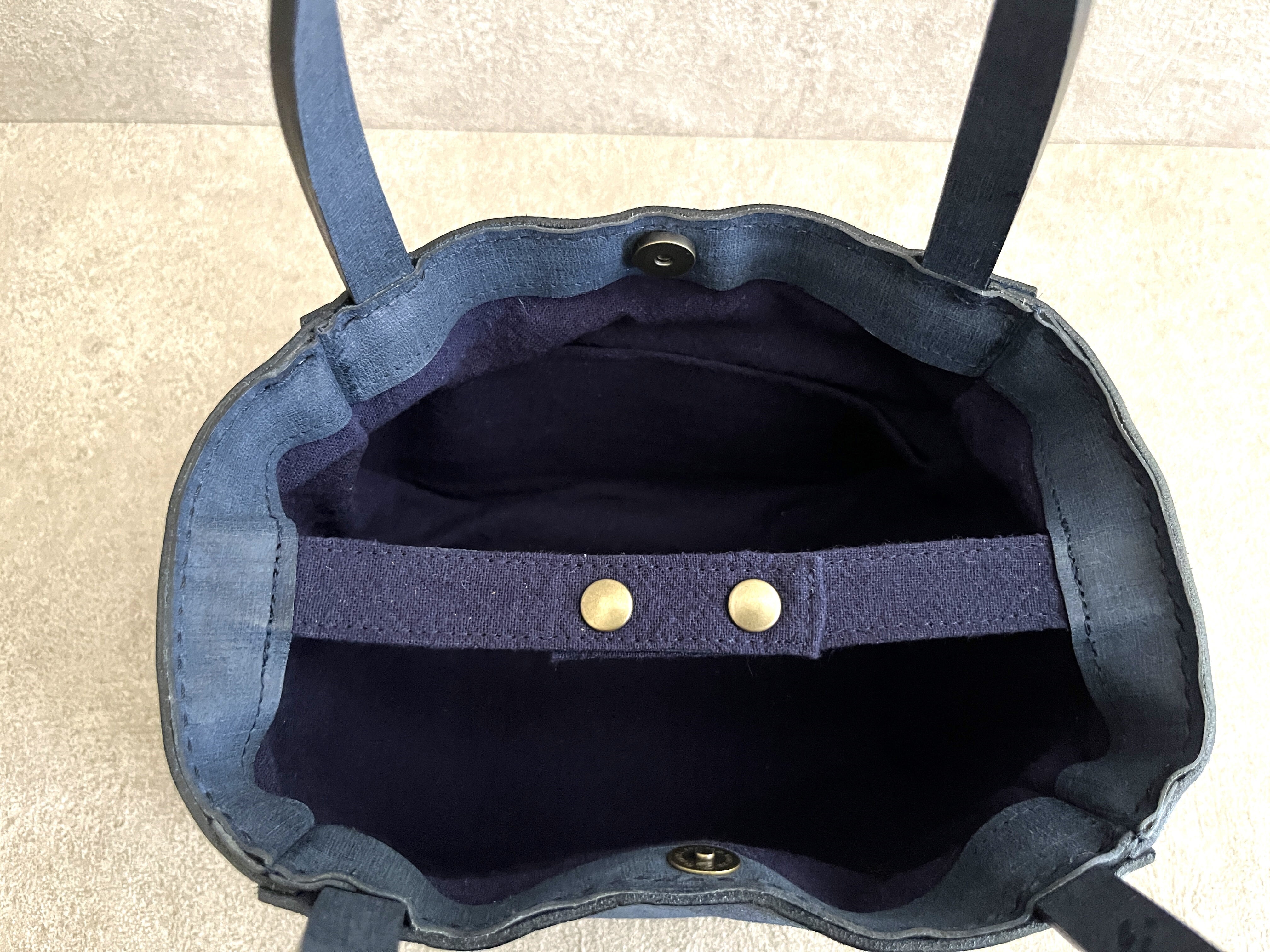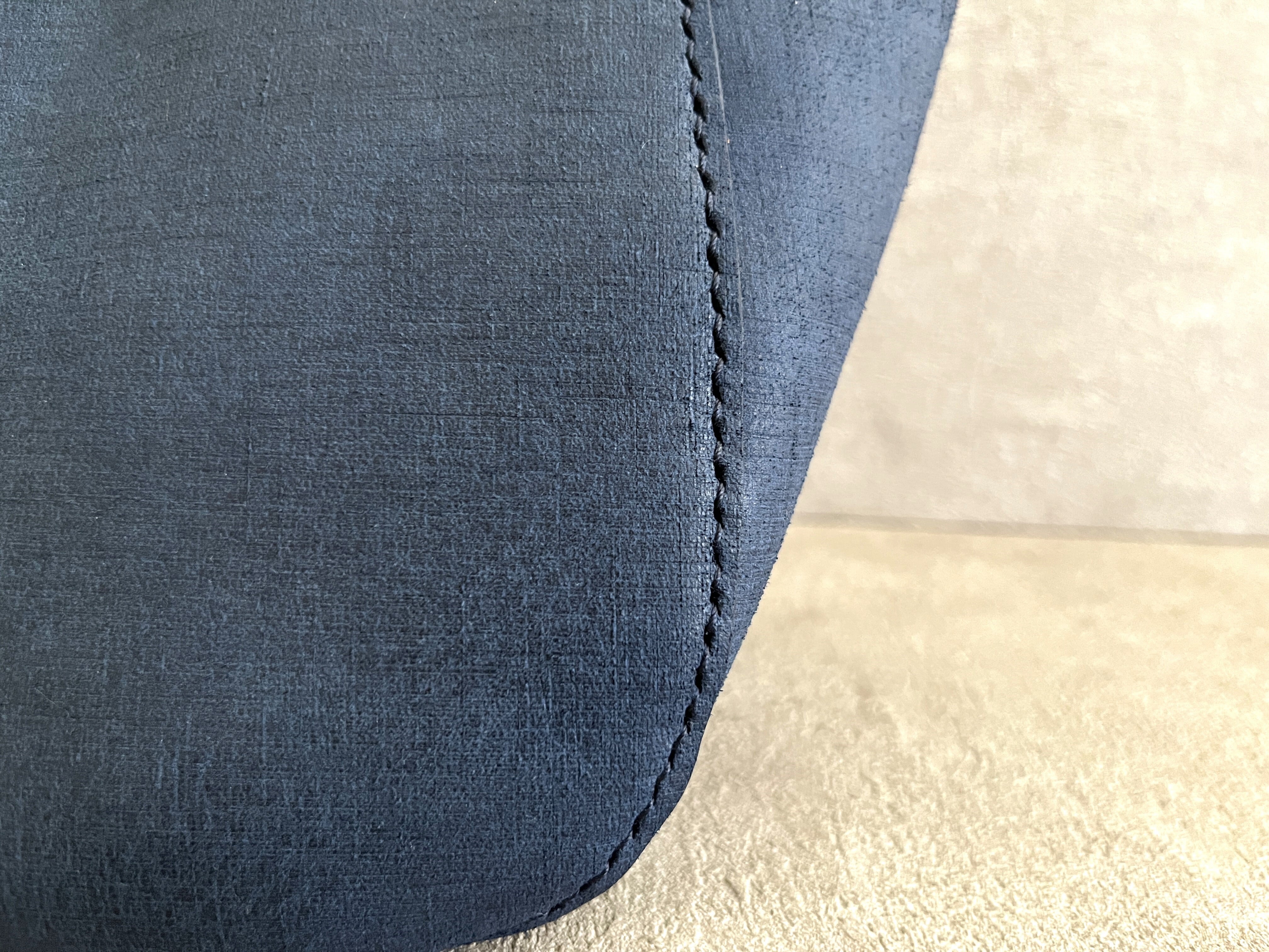 キャンバス地のようなイタリアンレザーの紺色を使って、