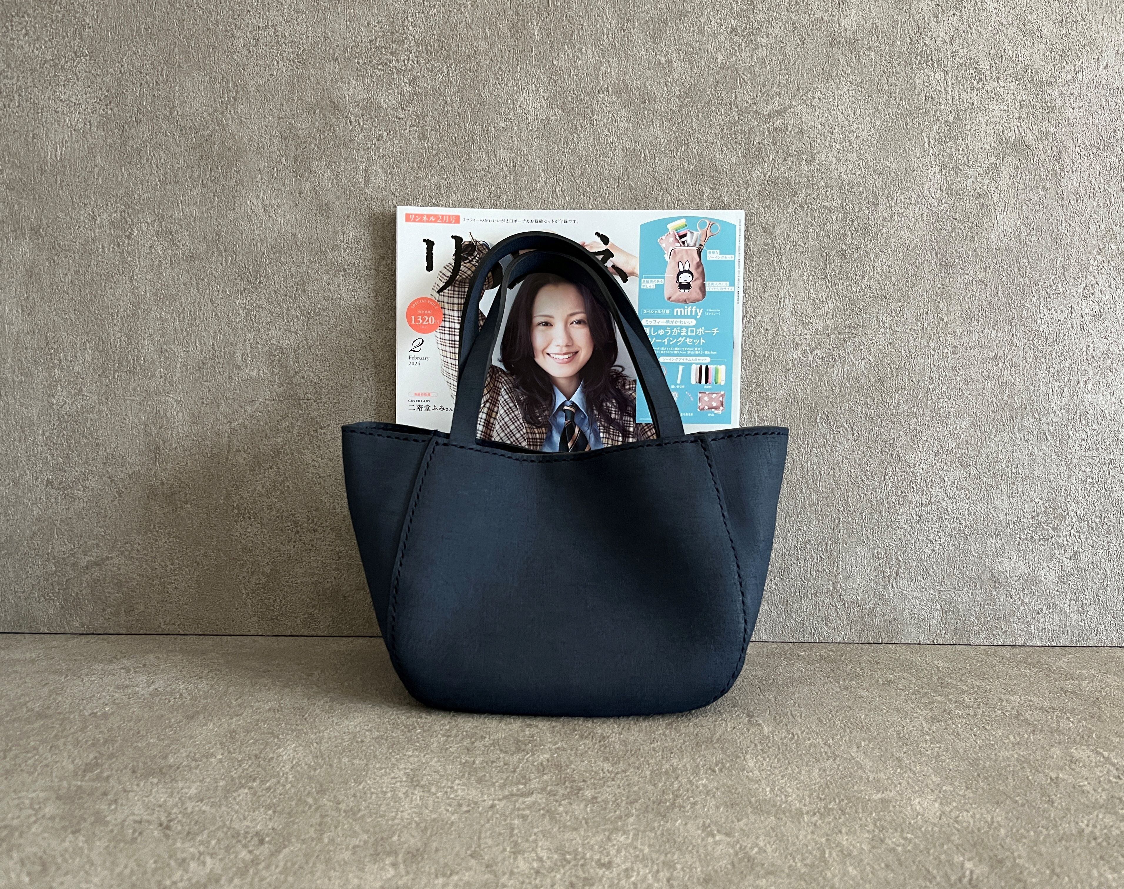 中のホックで2通り楽しめるコロンとしたハンドバッグを