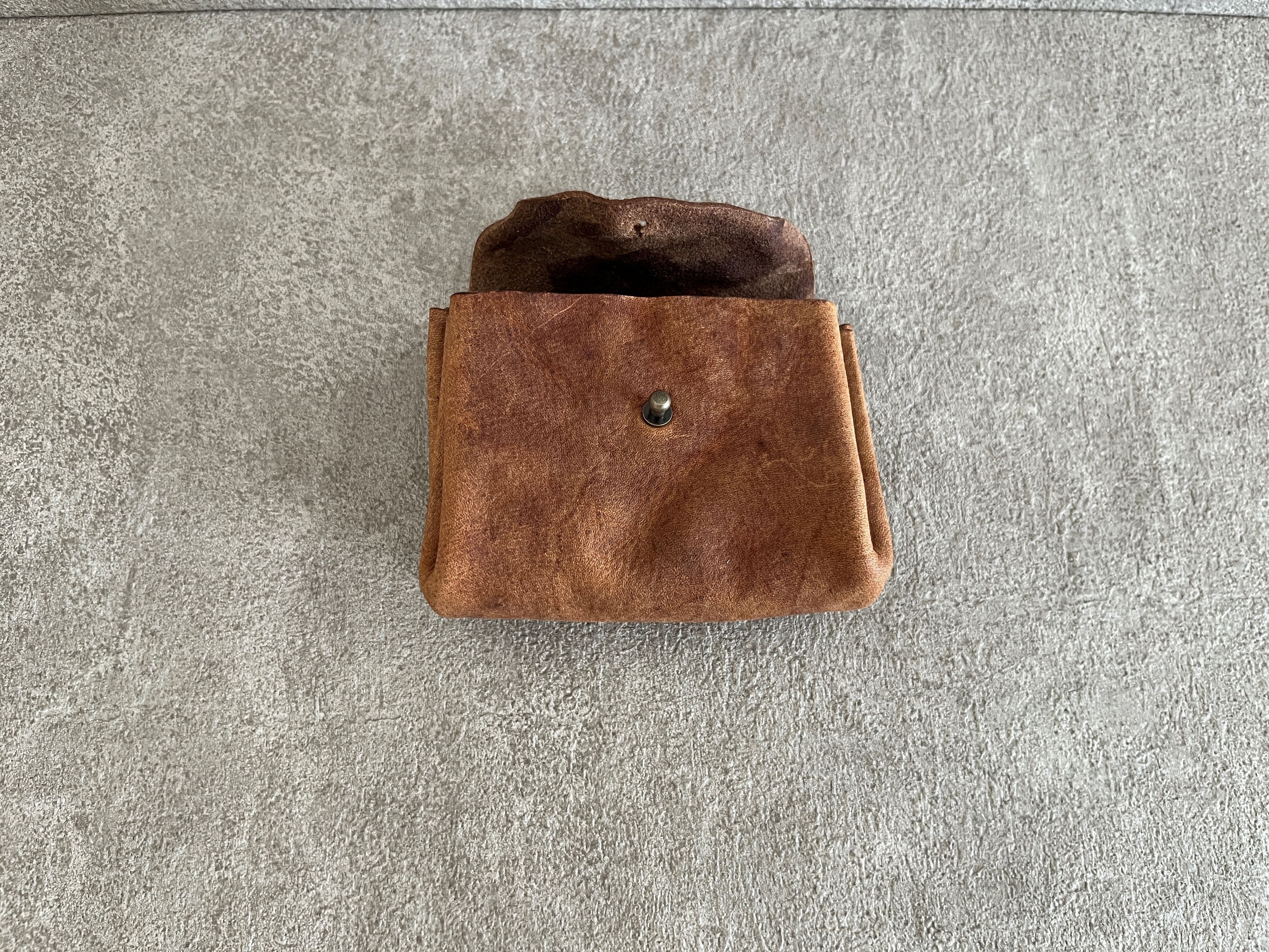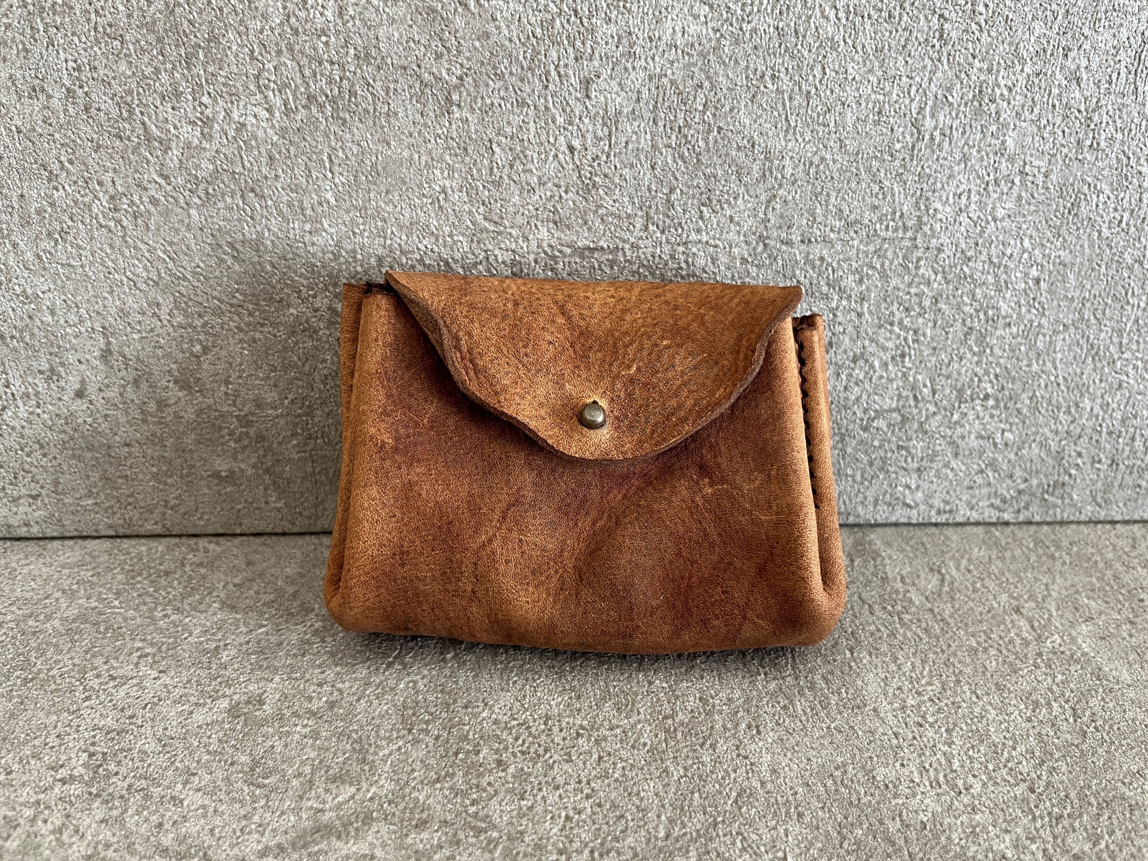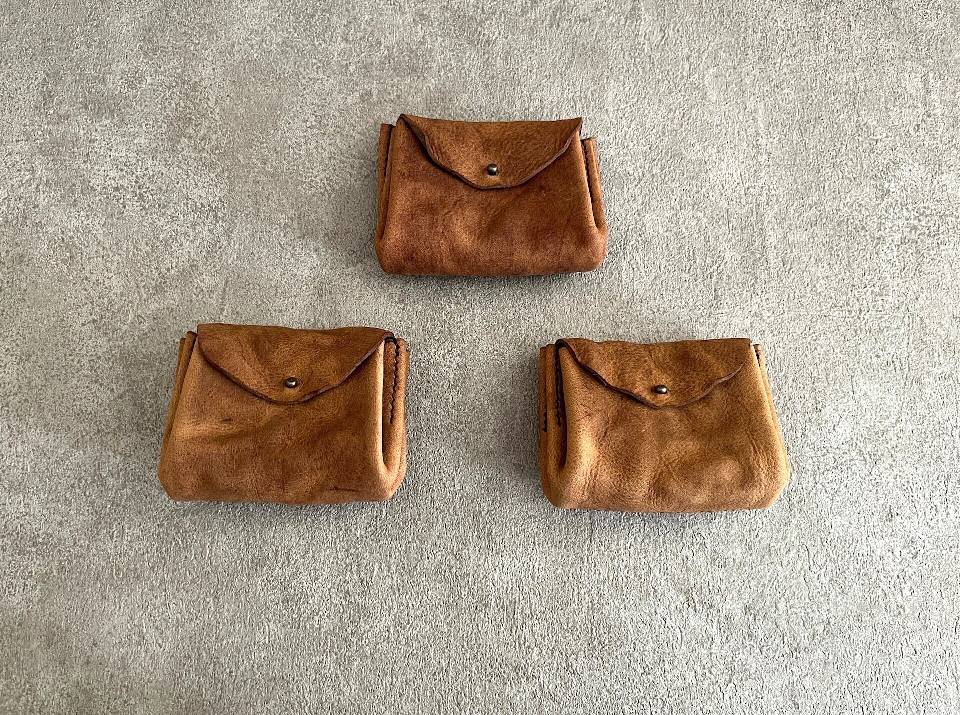 素朴な質感のイタリアンレザーを使い、手縫いで作りました。
