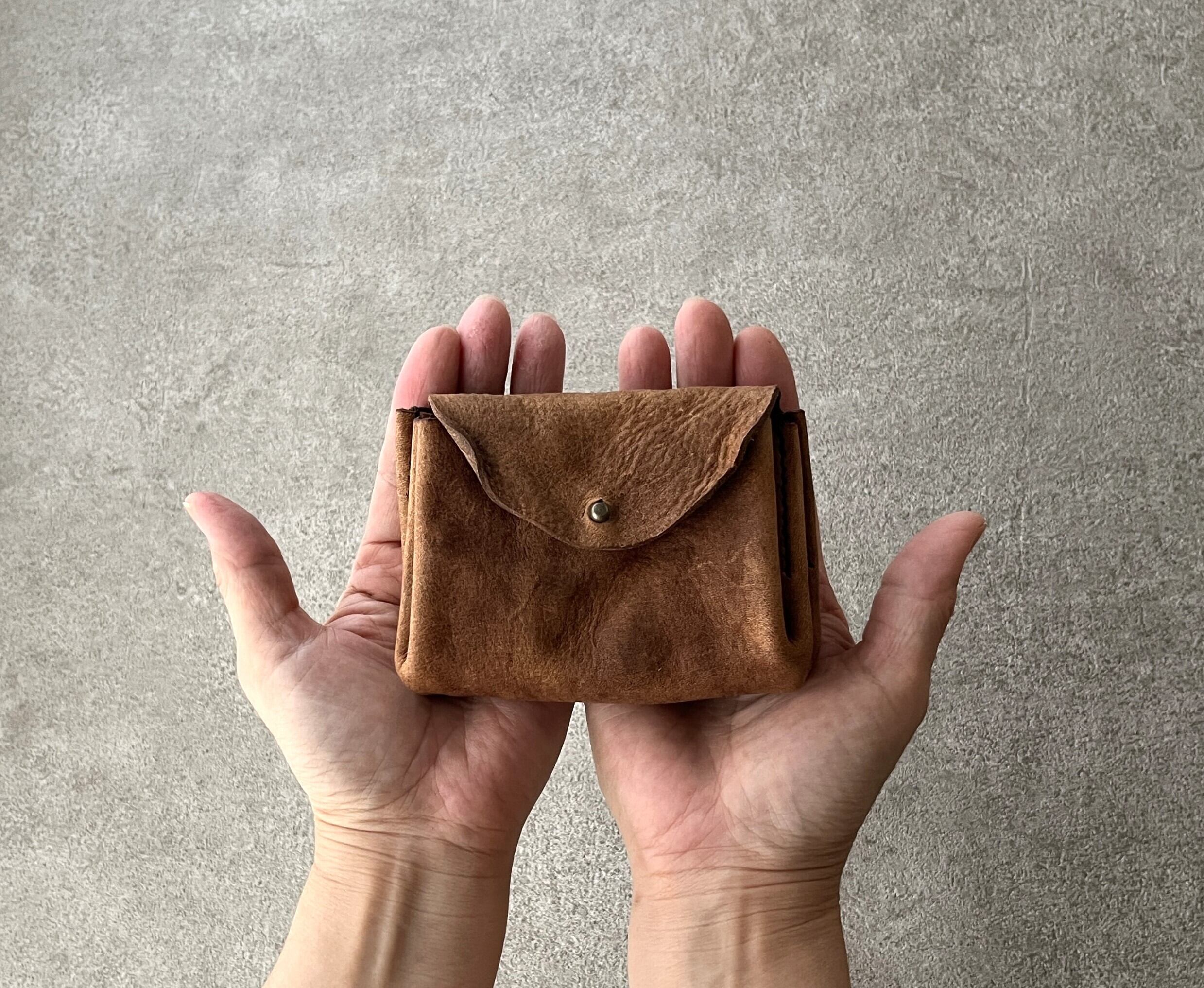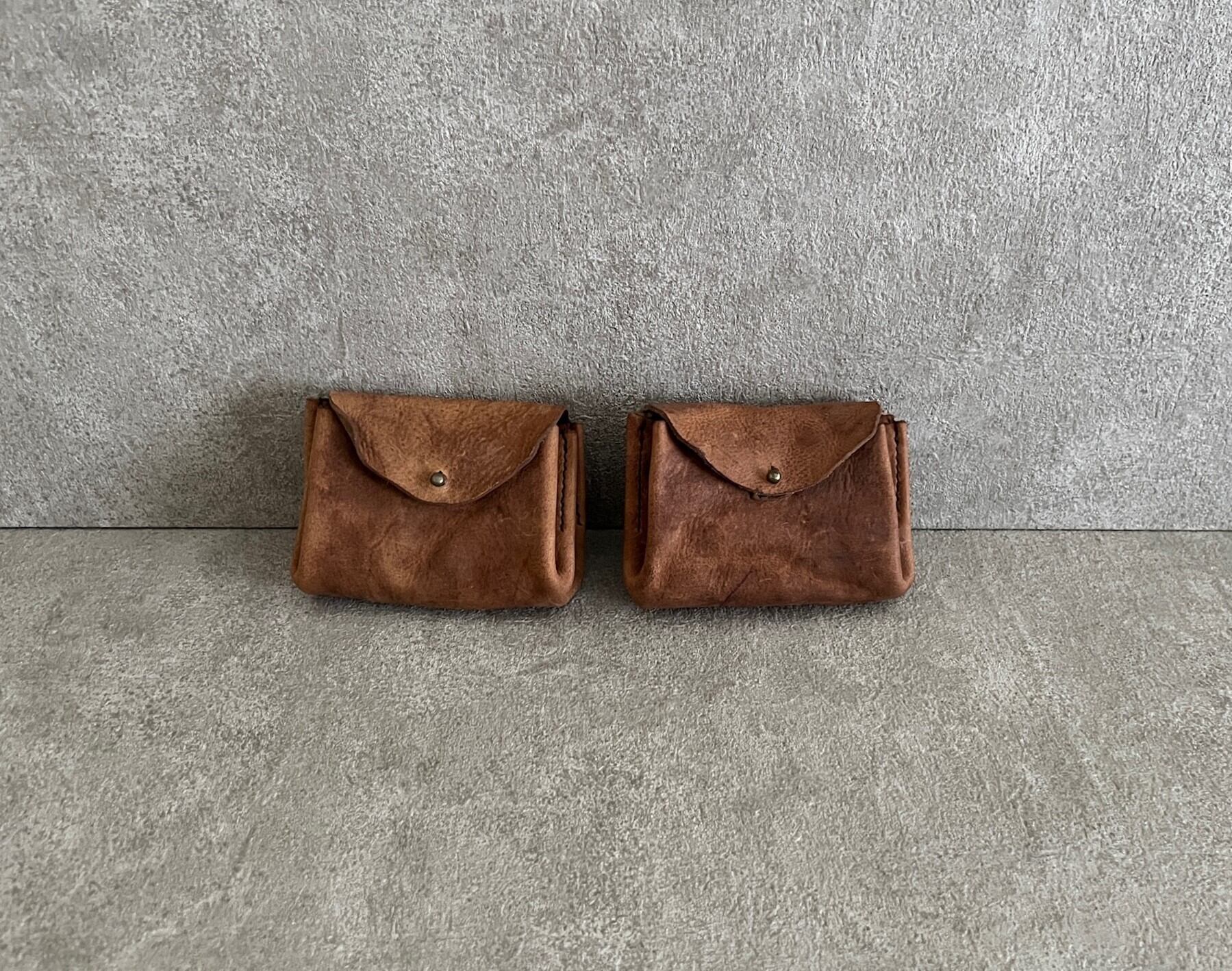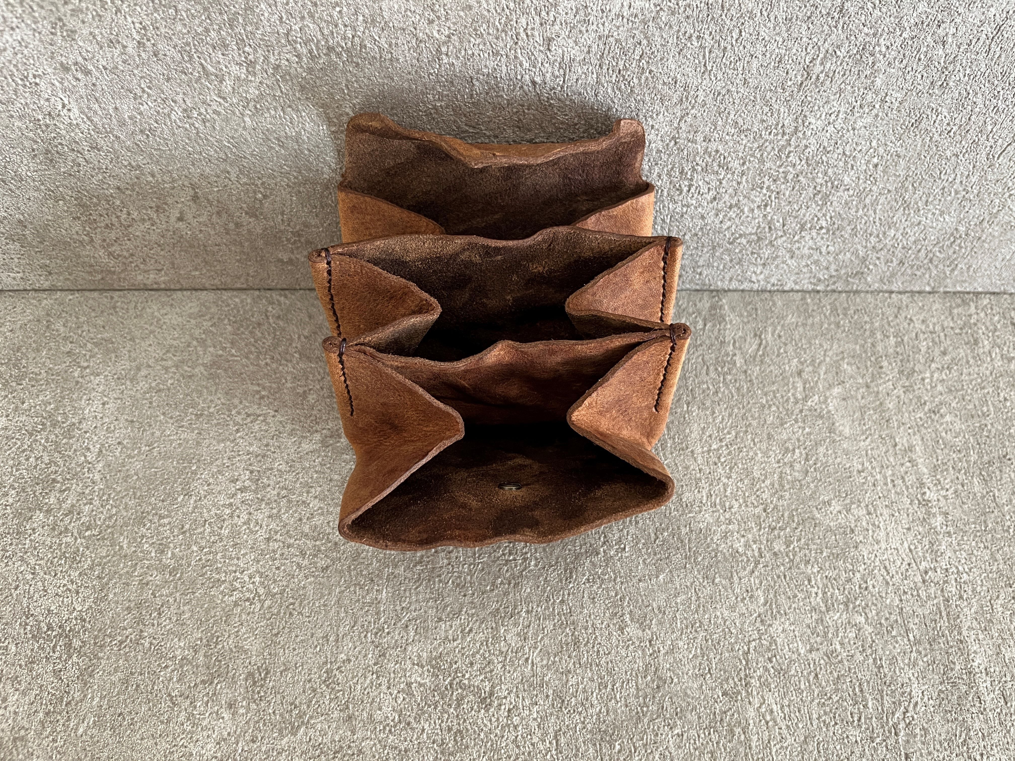 素朴な質感のイタリアンレザーを使い、手縫いで作りました。