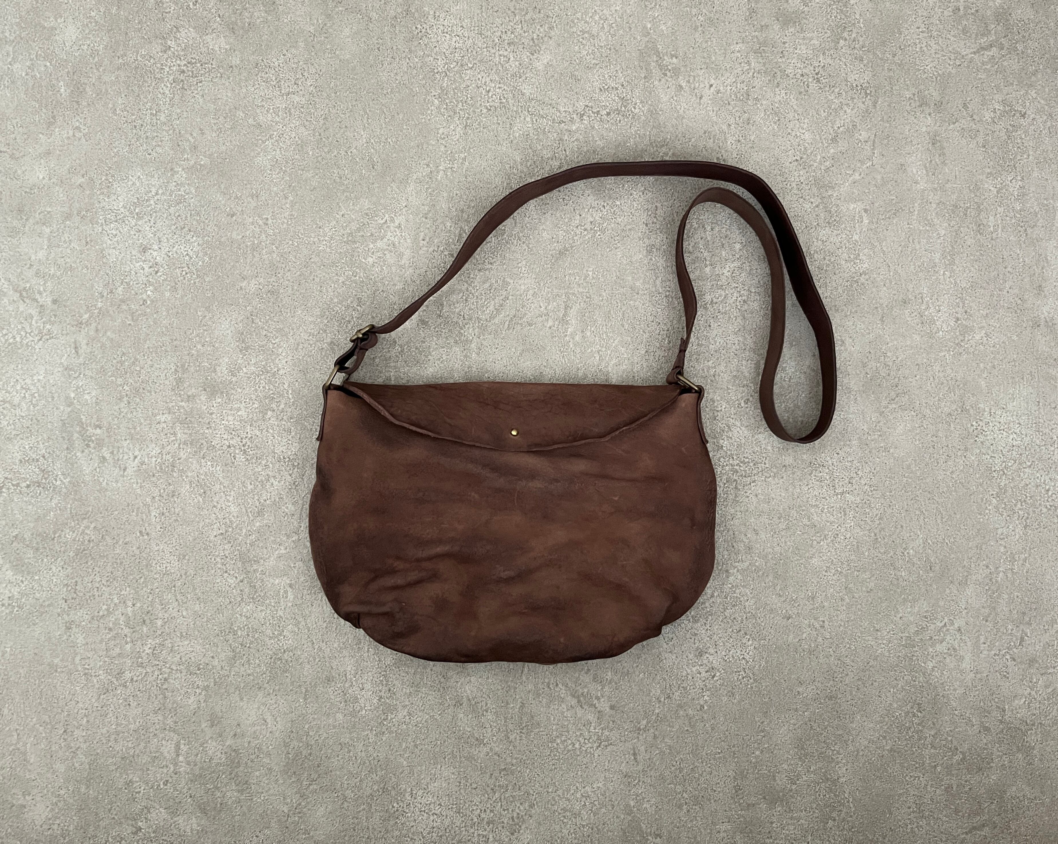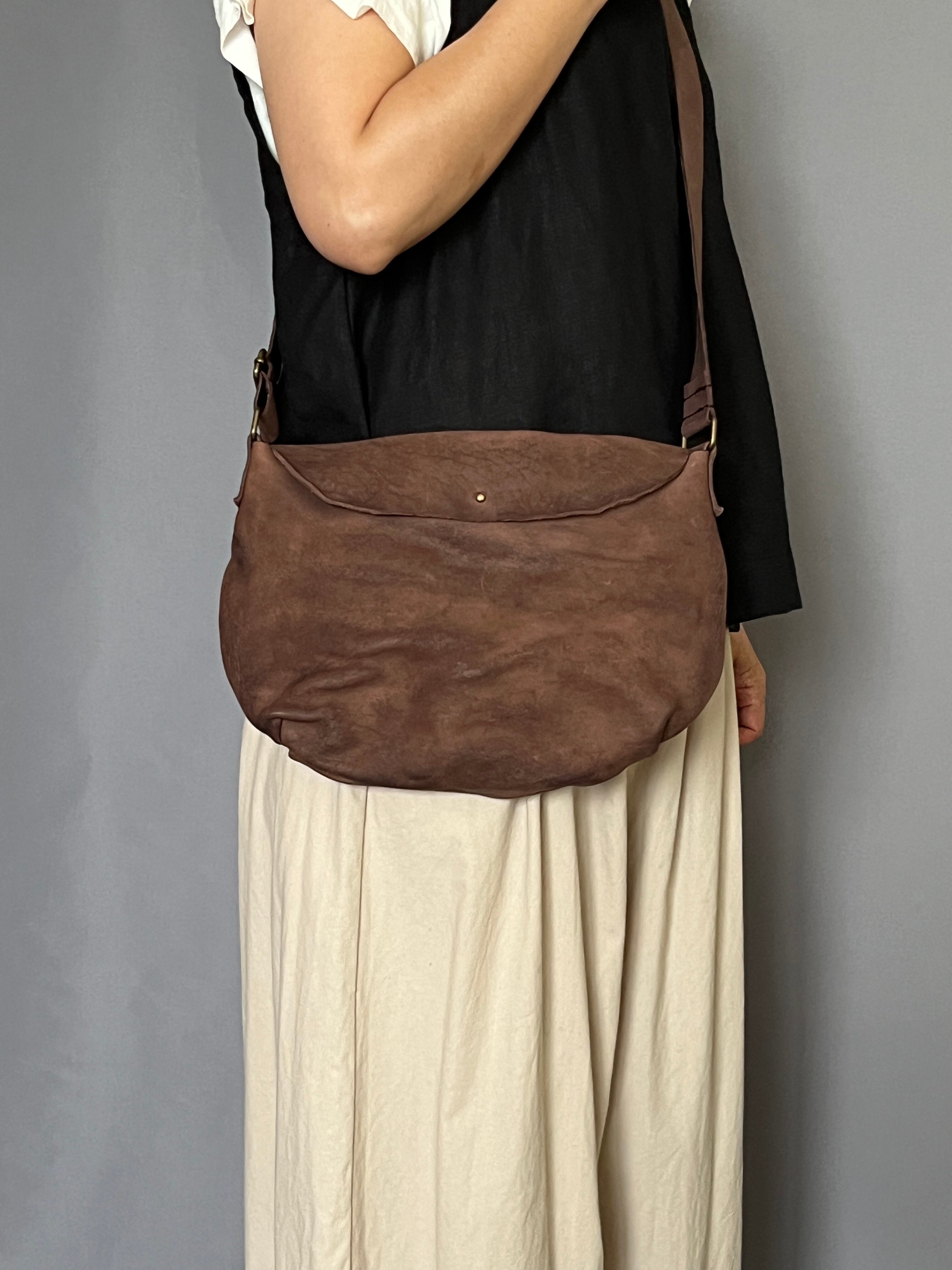 Semicircular shoulder bag with lid (M) chocolate フタつき半円型ショルダーバッグ(M) チョコ <C>