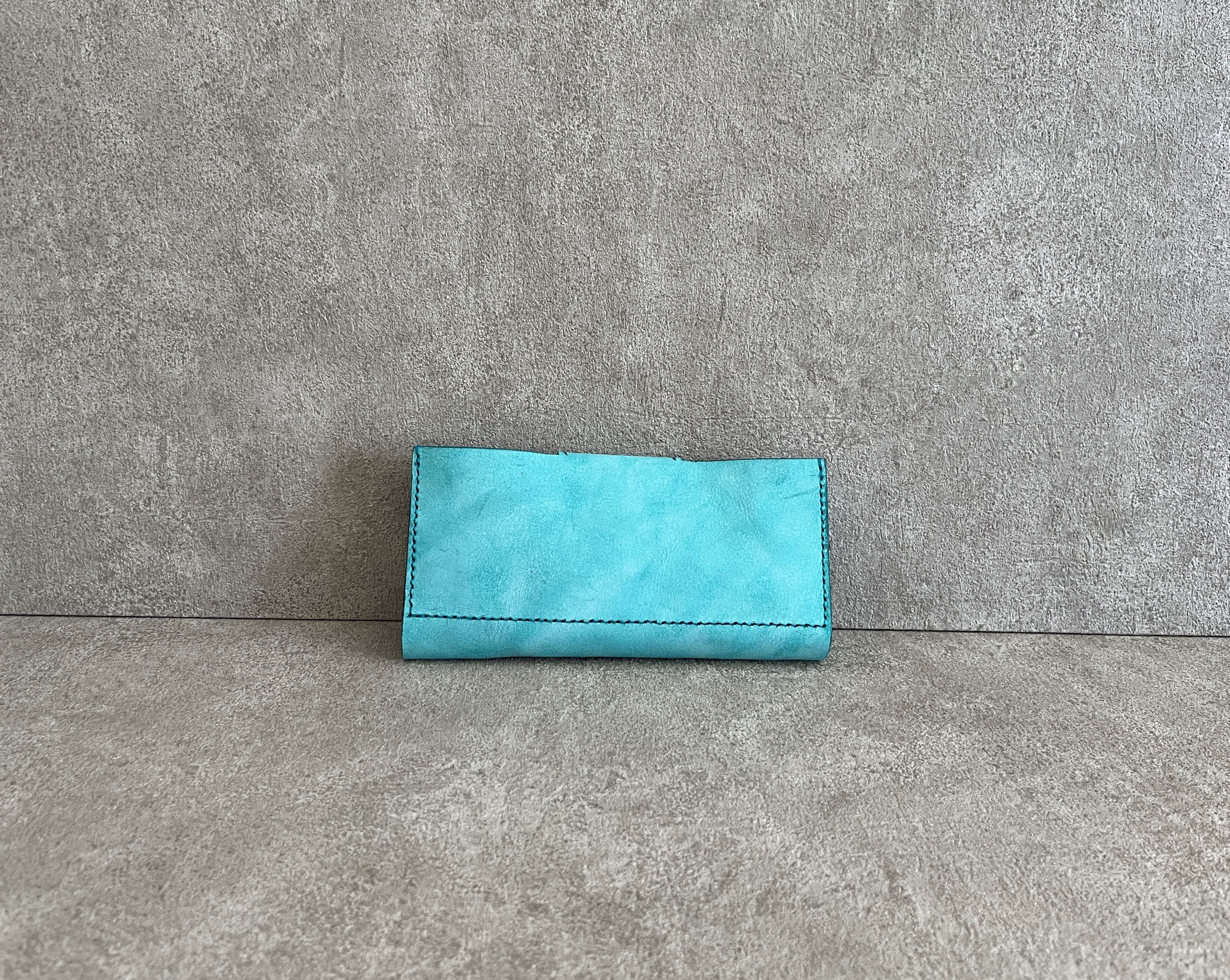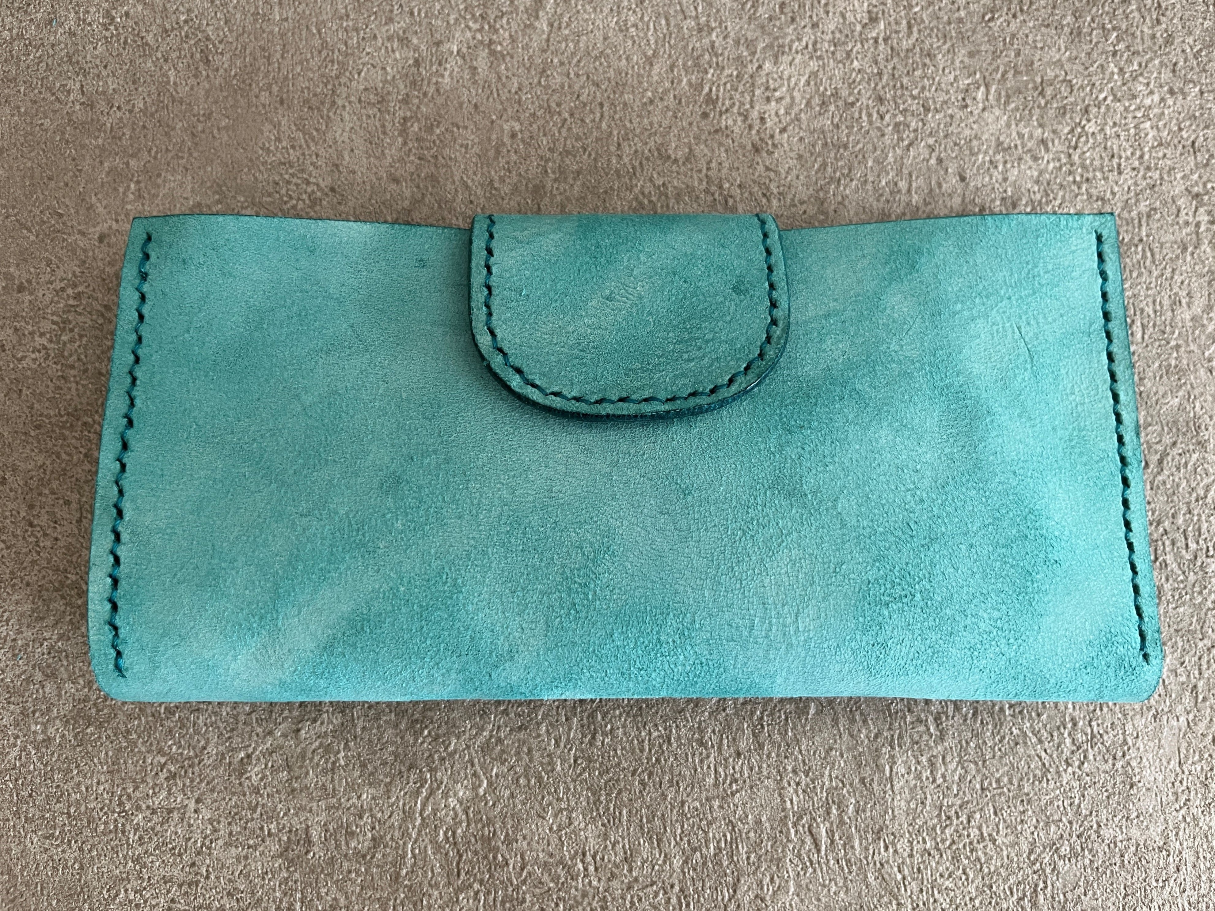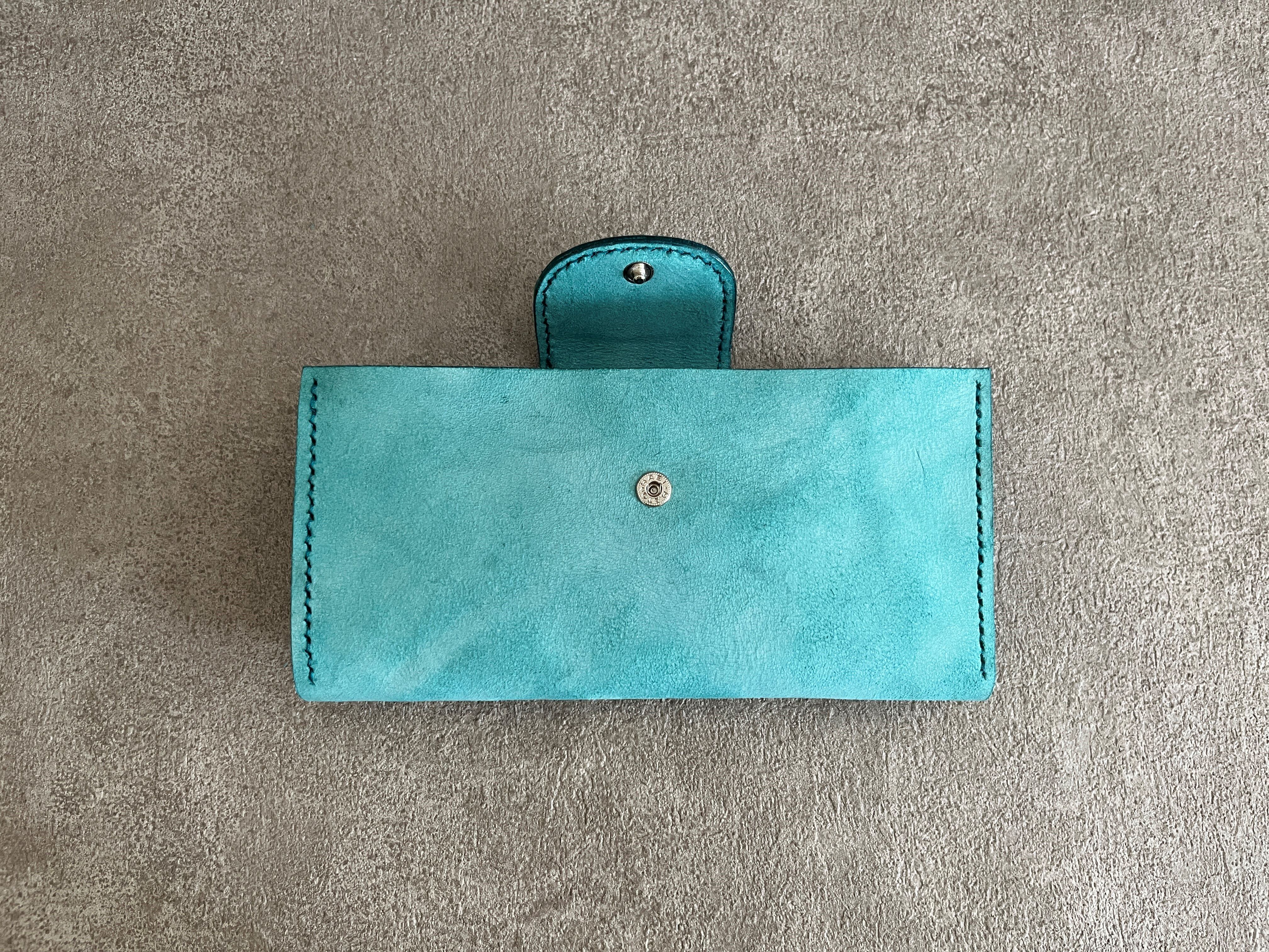 柔らかめだけどコシ感もあるイタリアンレザーのアイスブルーを使って、