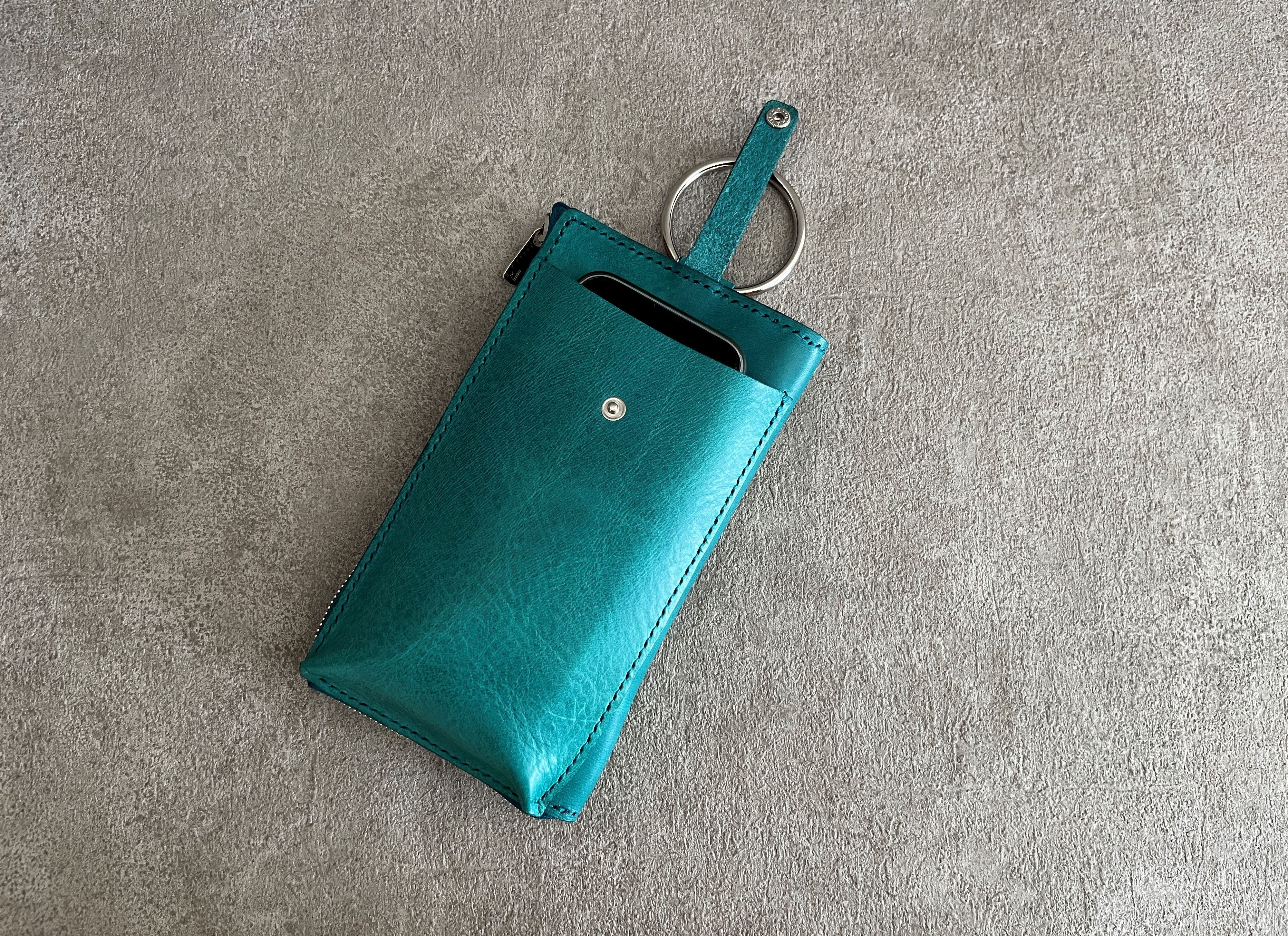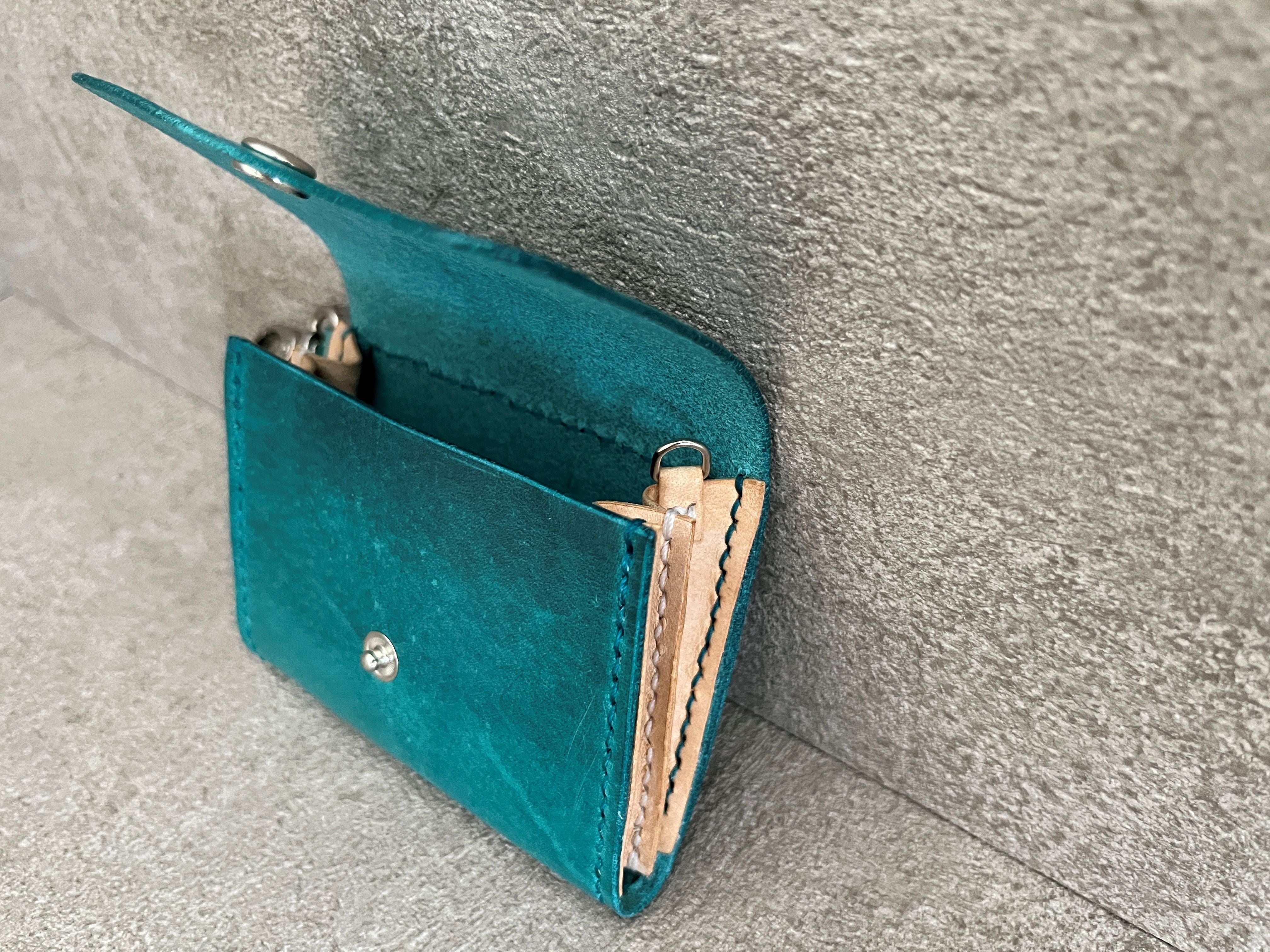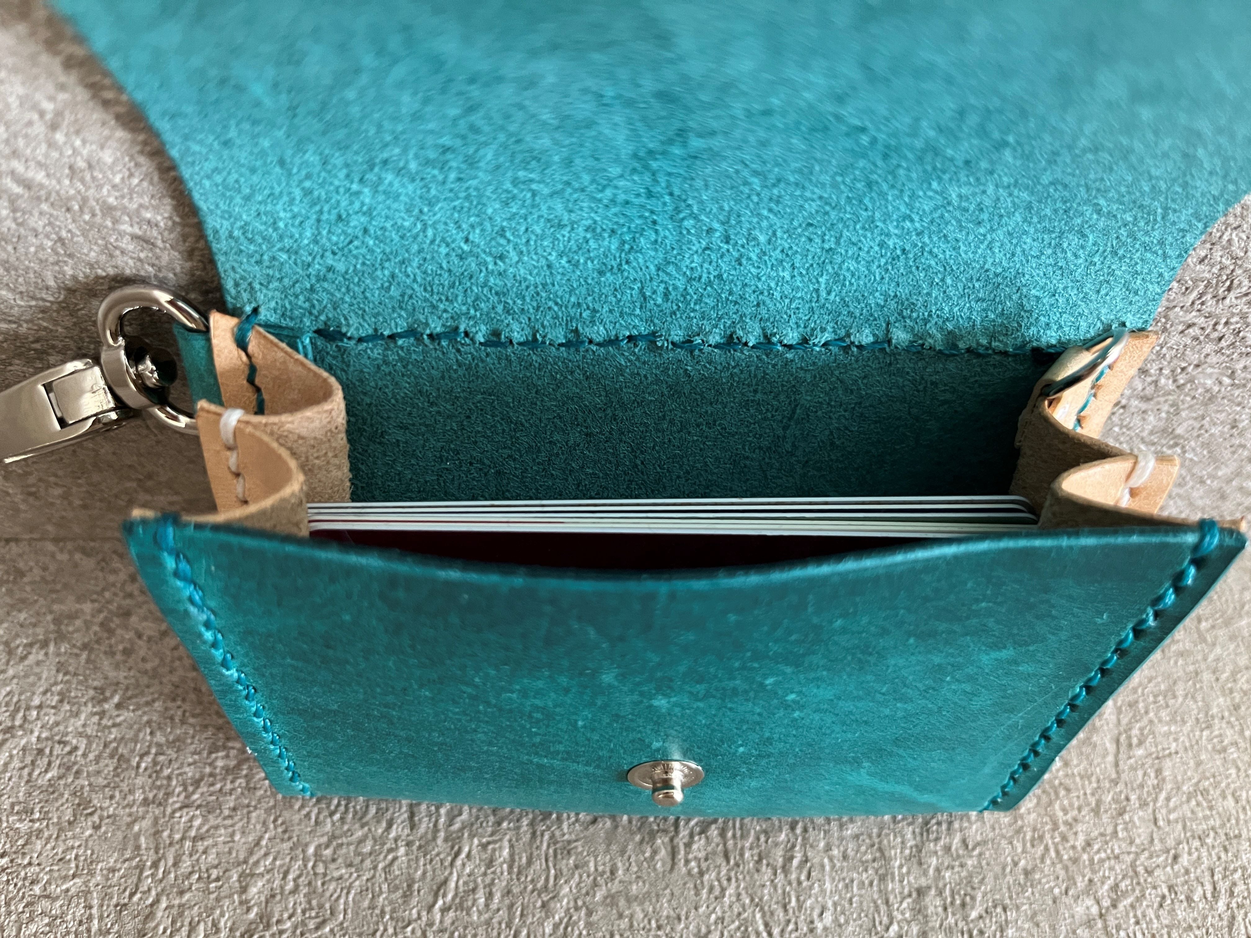 外側は<E>鮮やかなターコイズのプルアップレザーを使用し、