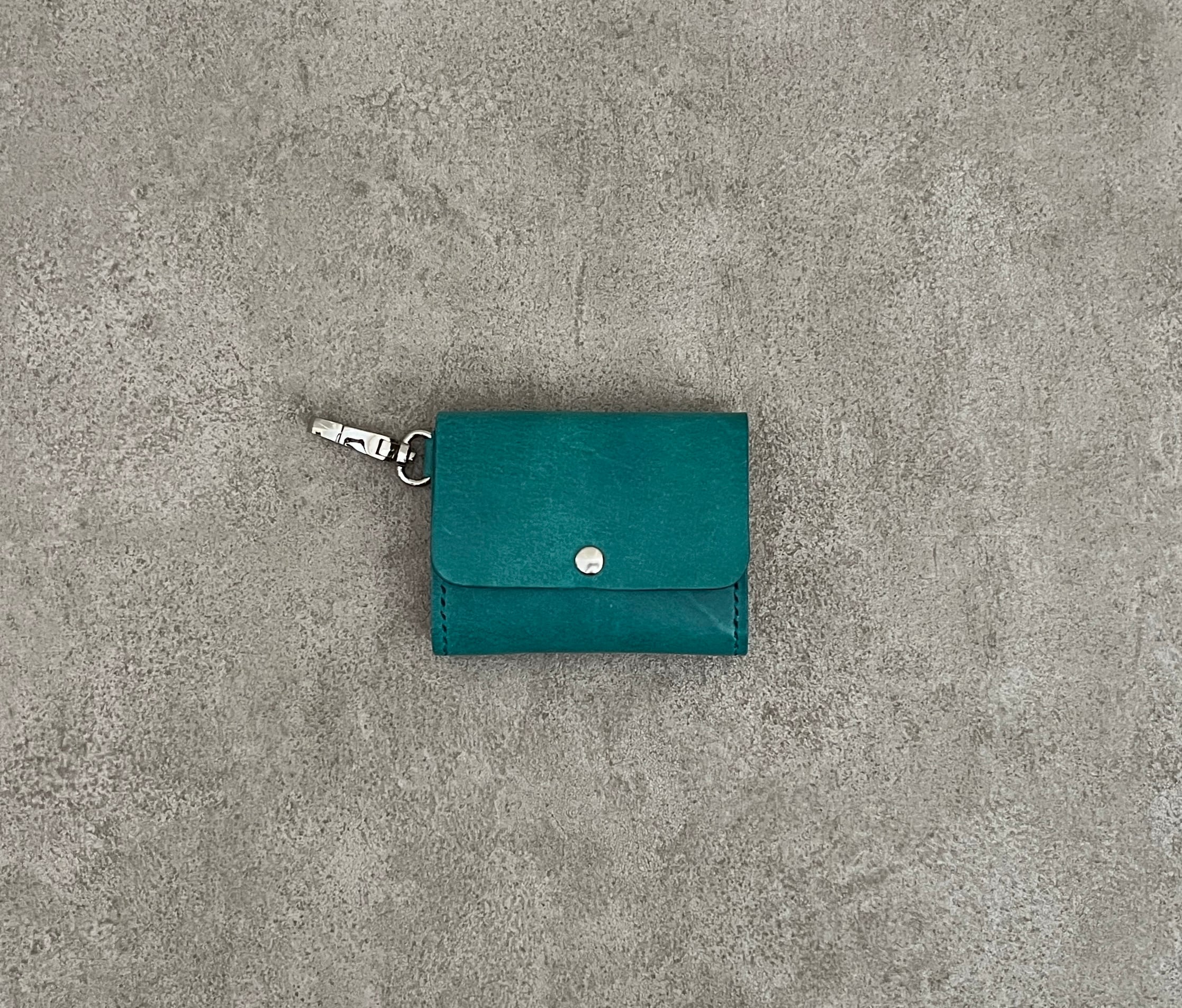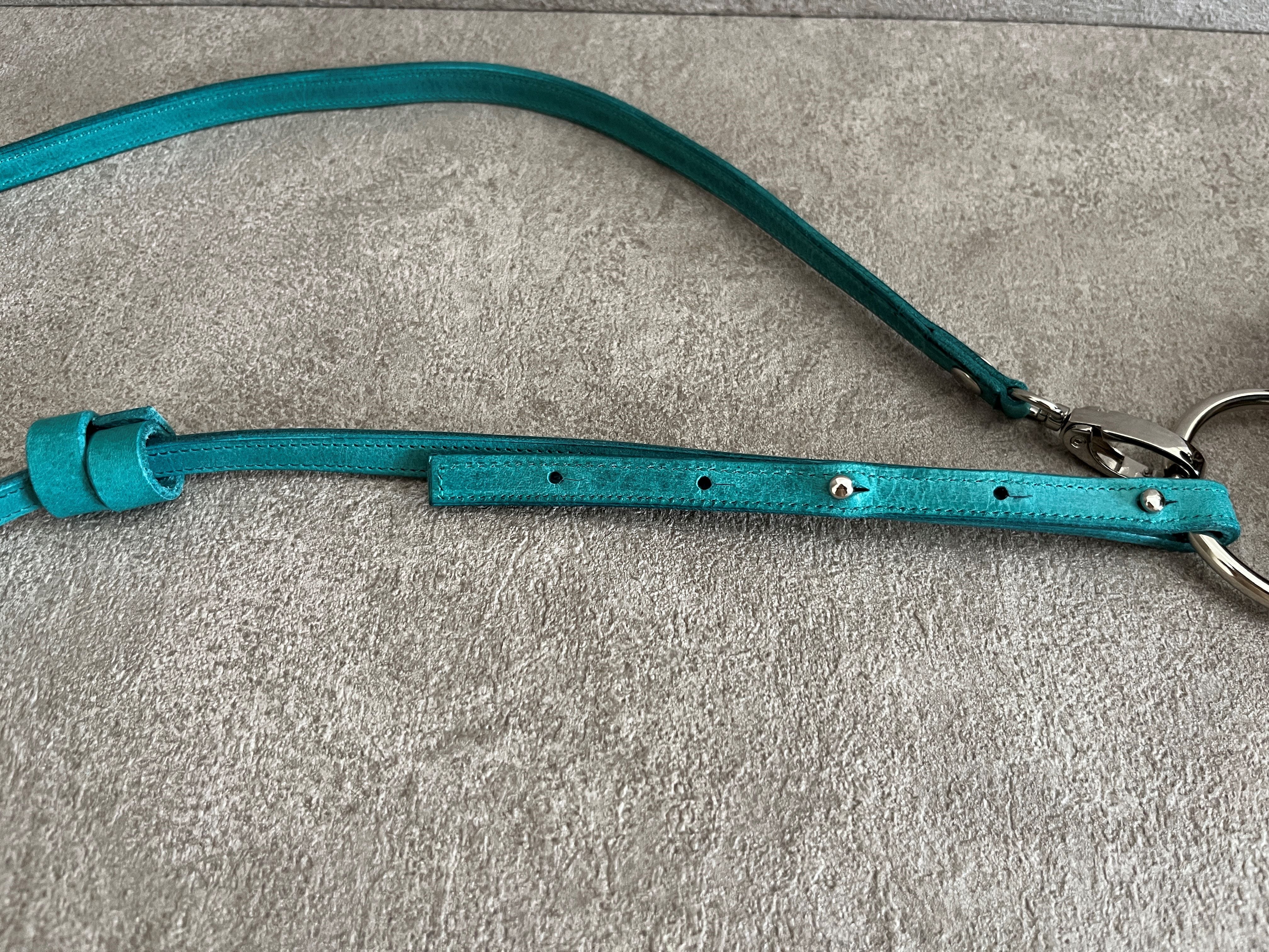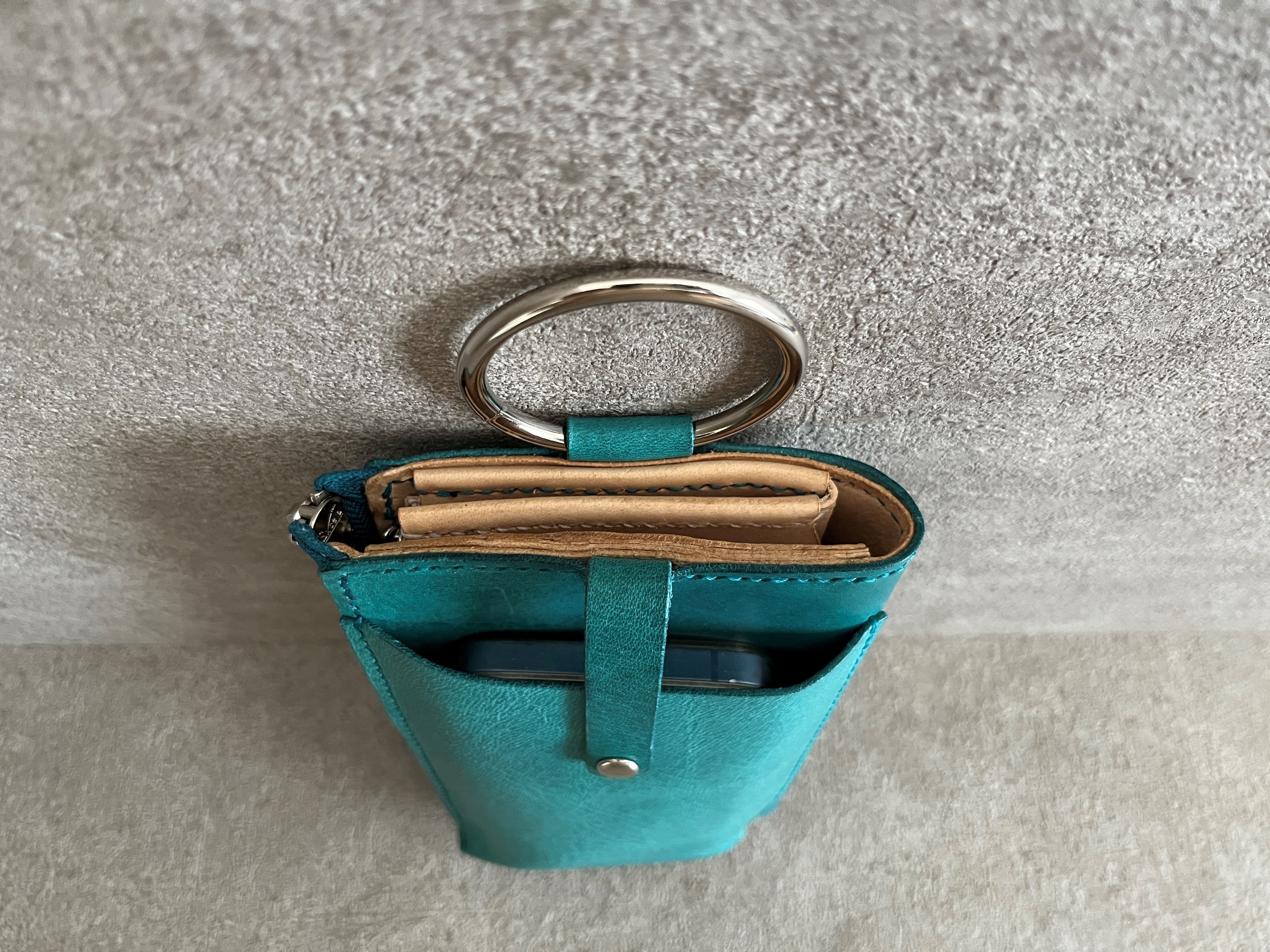 外側は<E>鮮やかなターコイズのプルアップレザーを使用し、