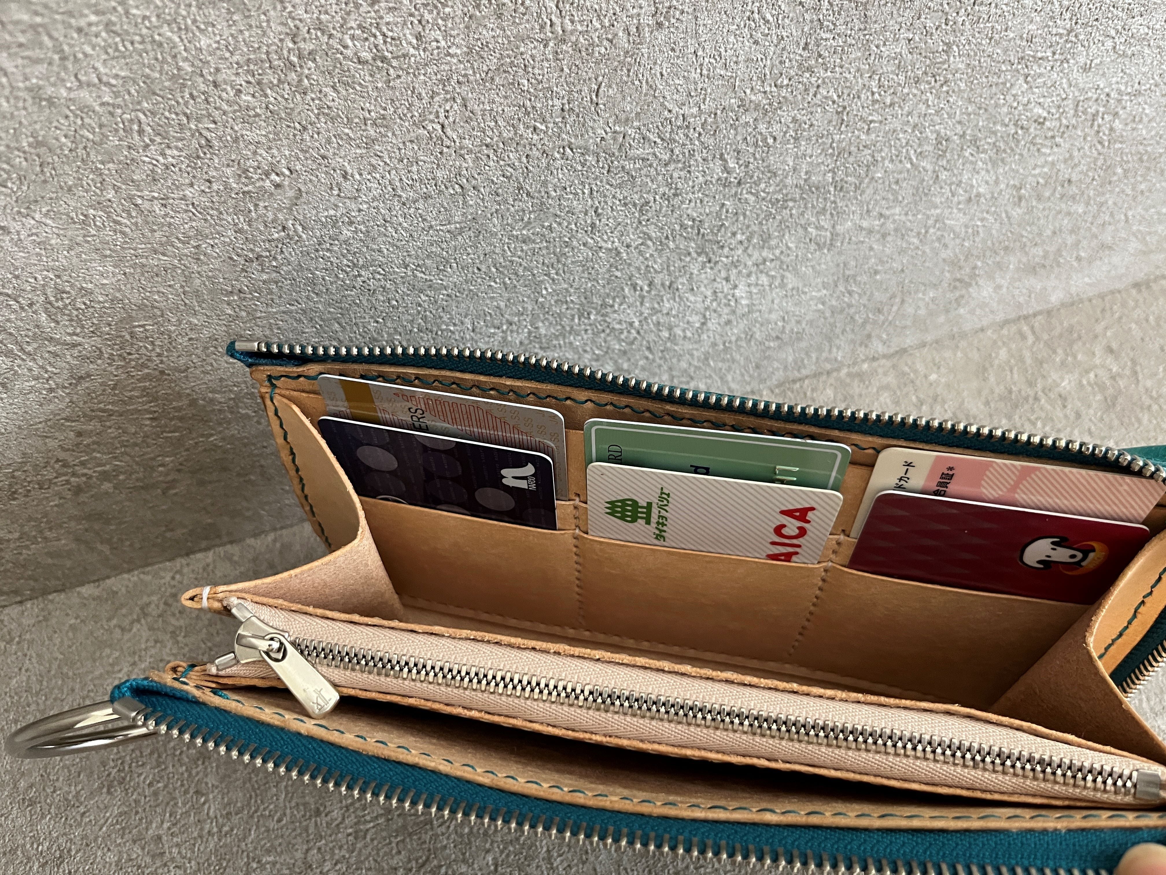 内側は長財布としてお札、カード、コインなど収納できます。