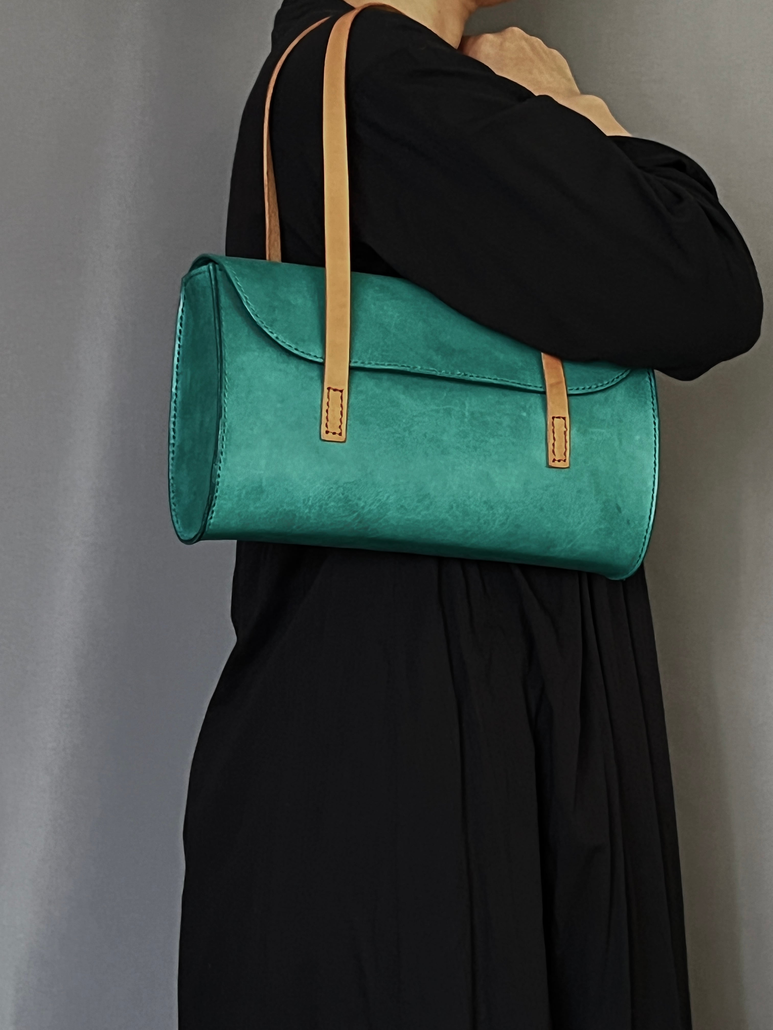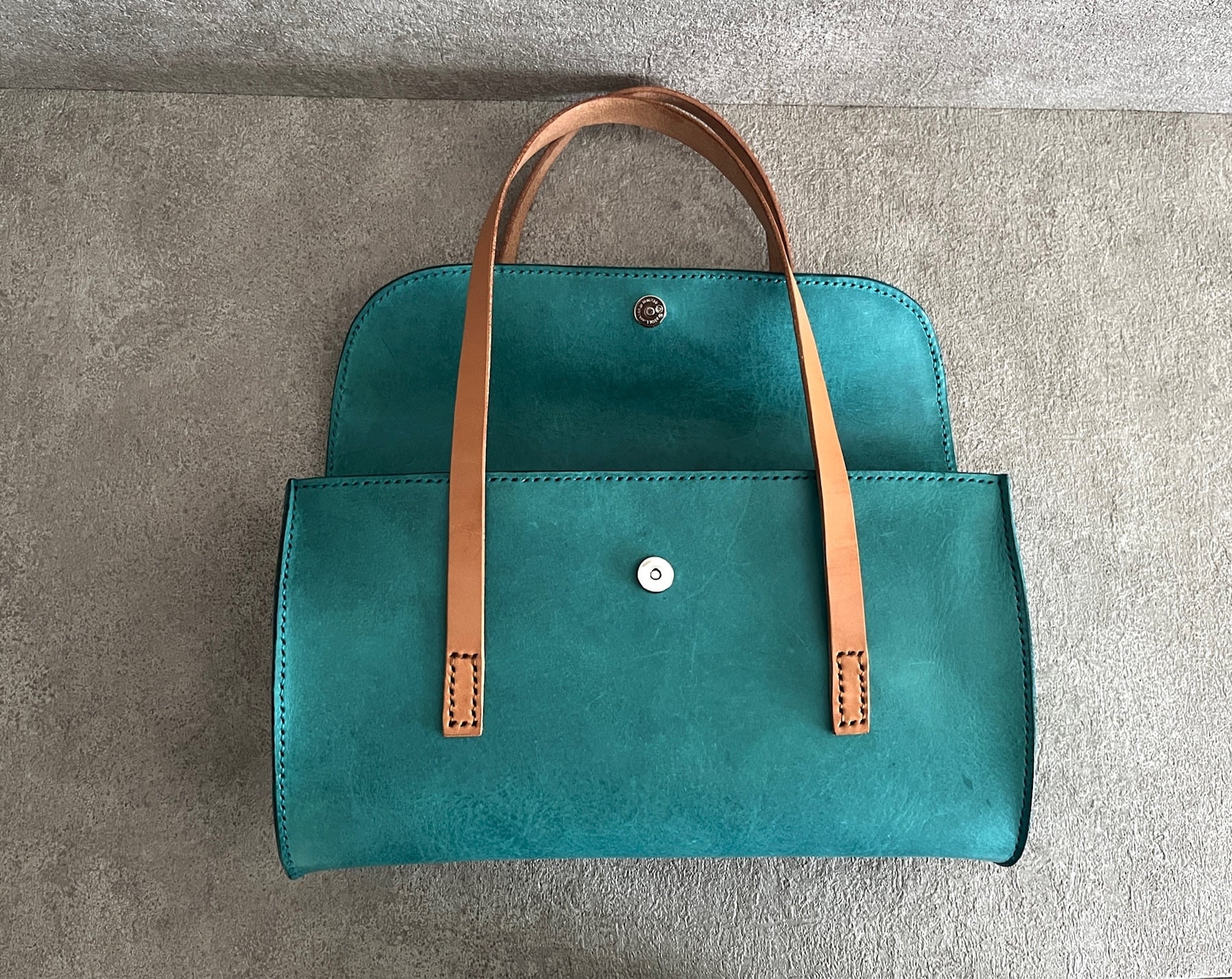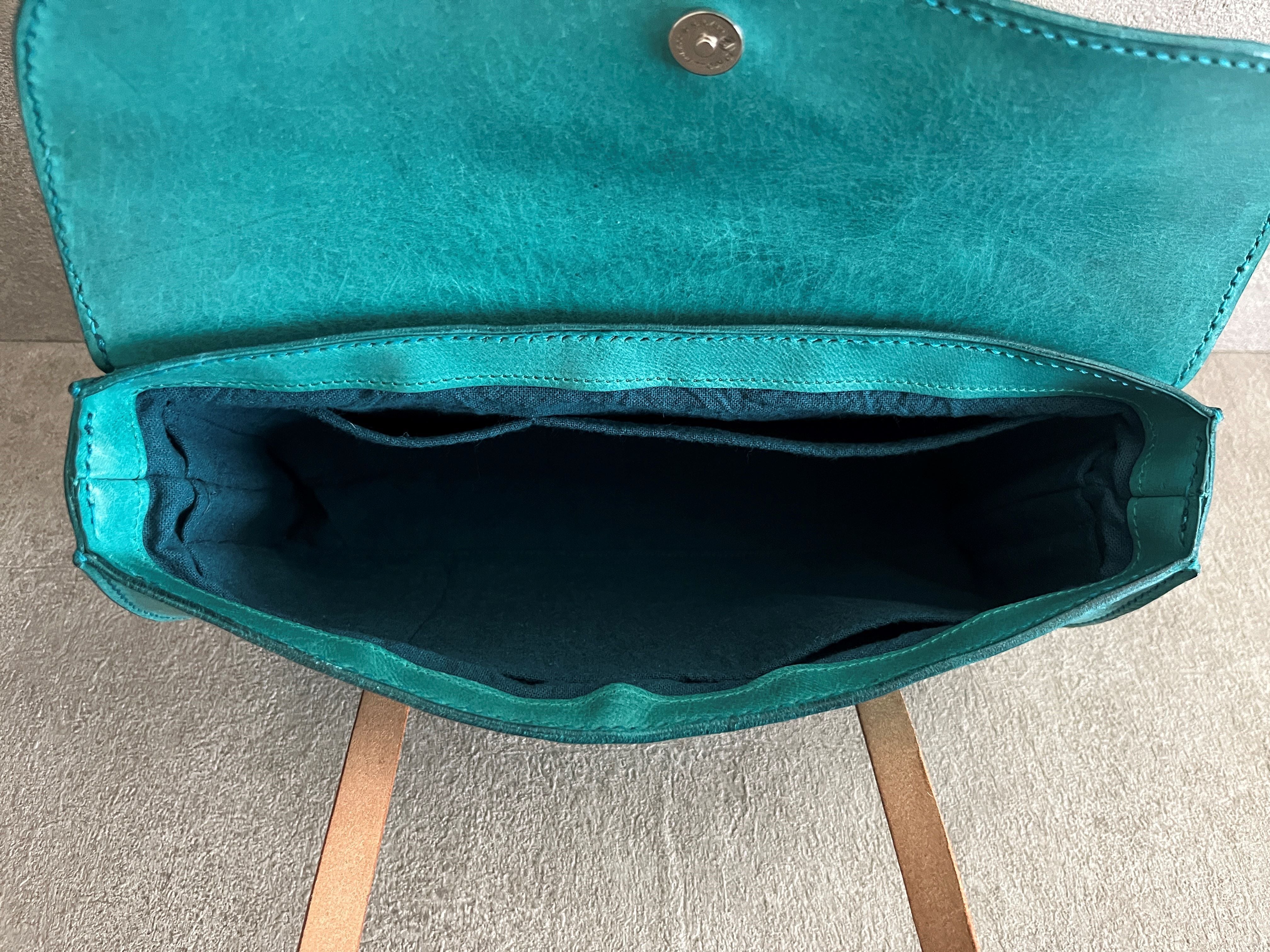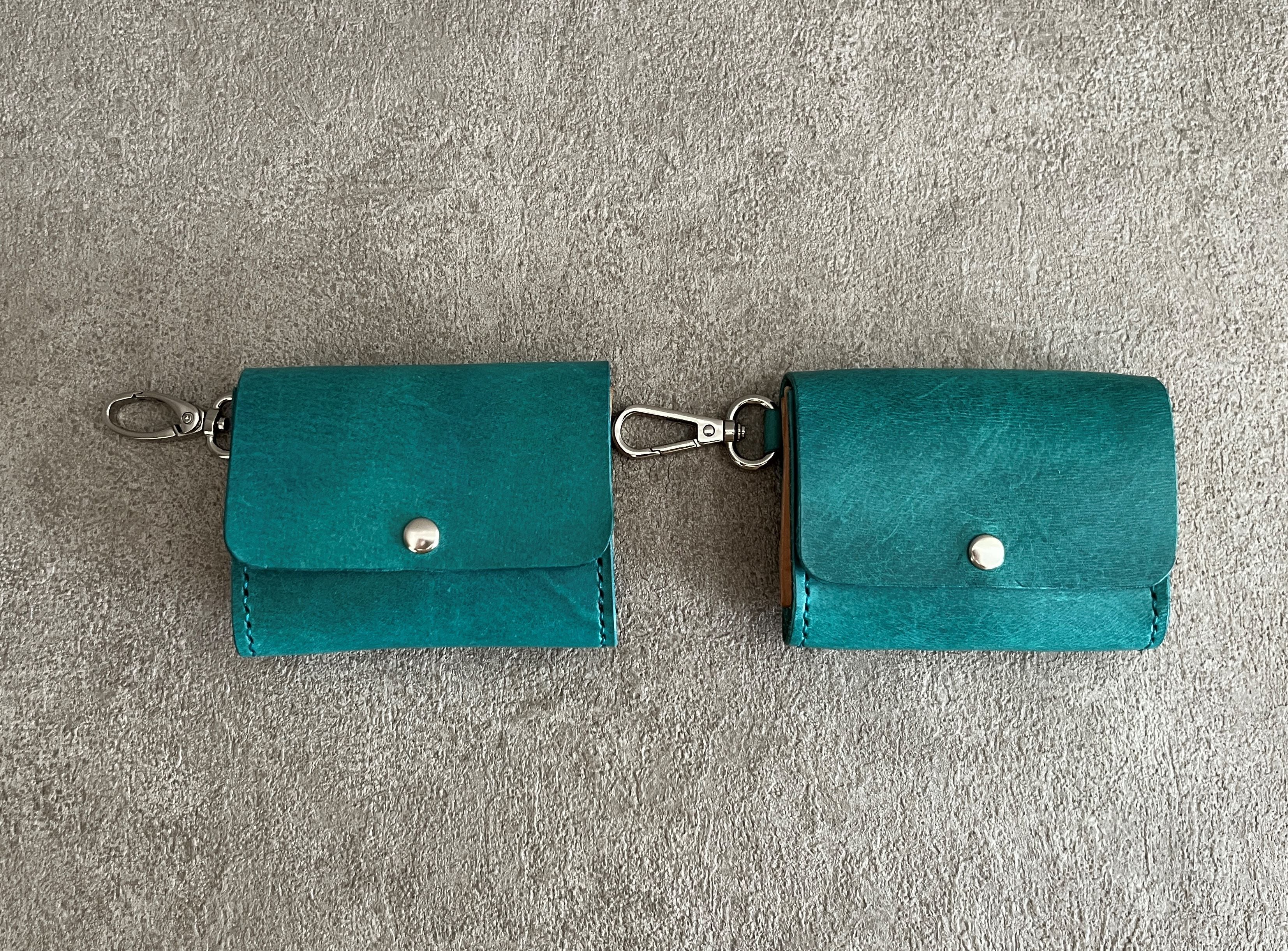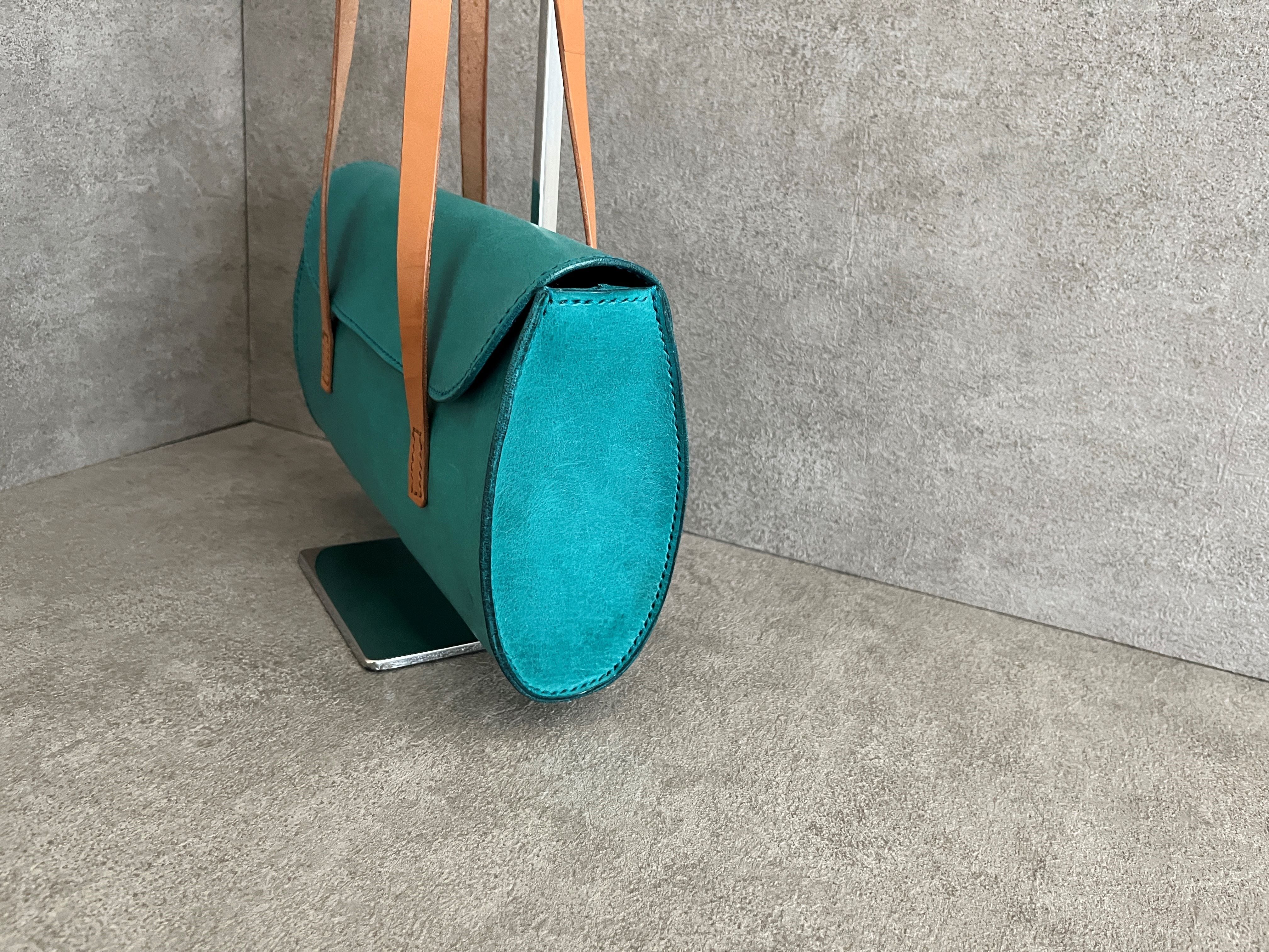 鮮やかなターコイズのプルアップレザーで
