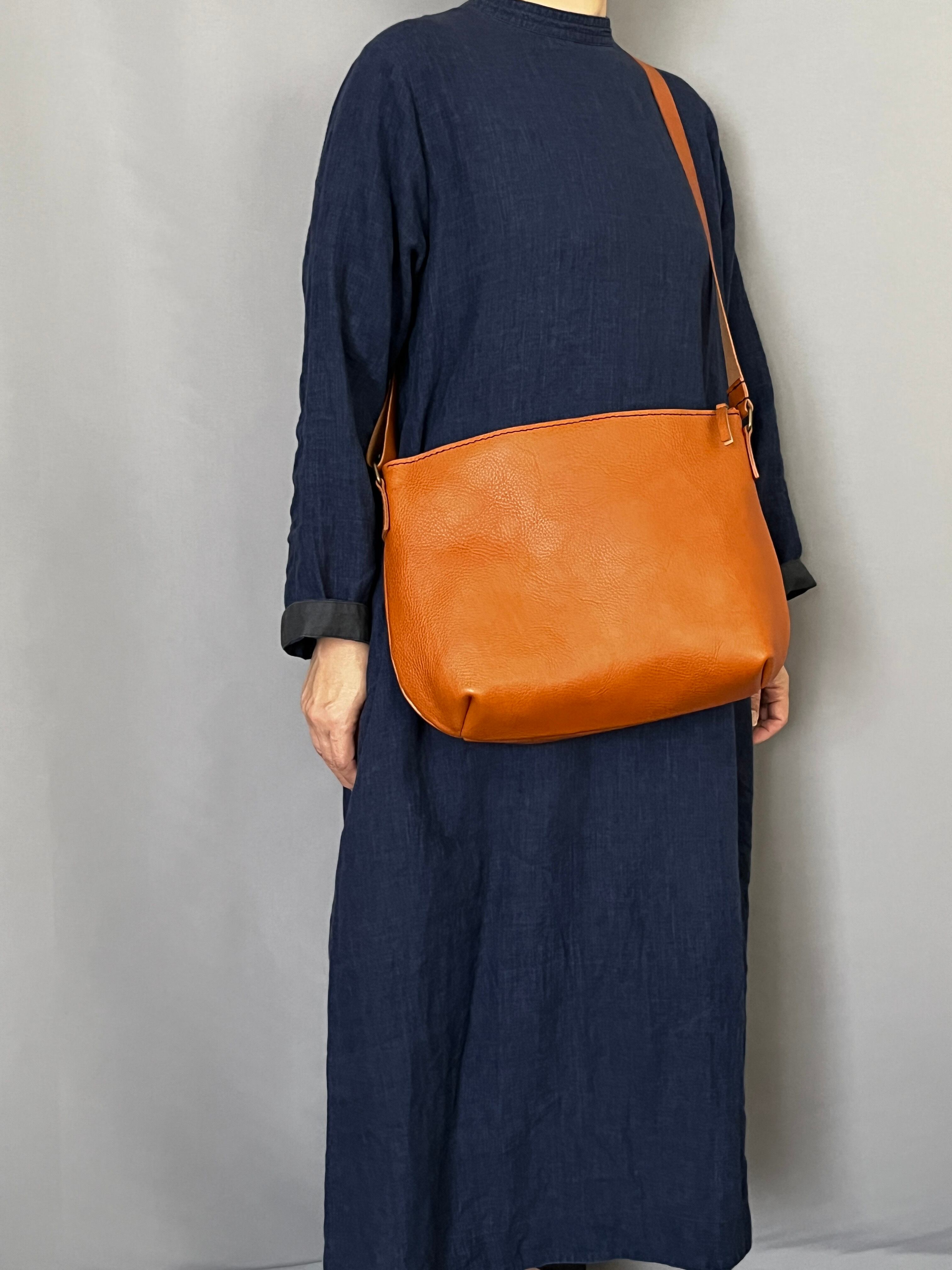 手縫いで作りました半円型ショルダーバッグです。