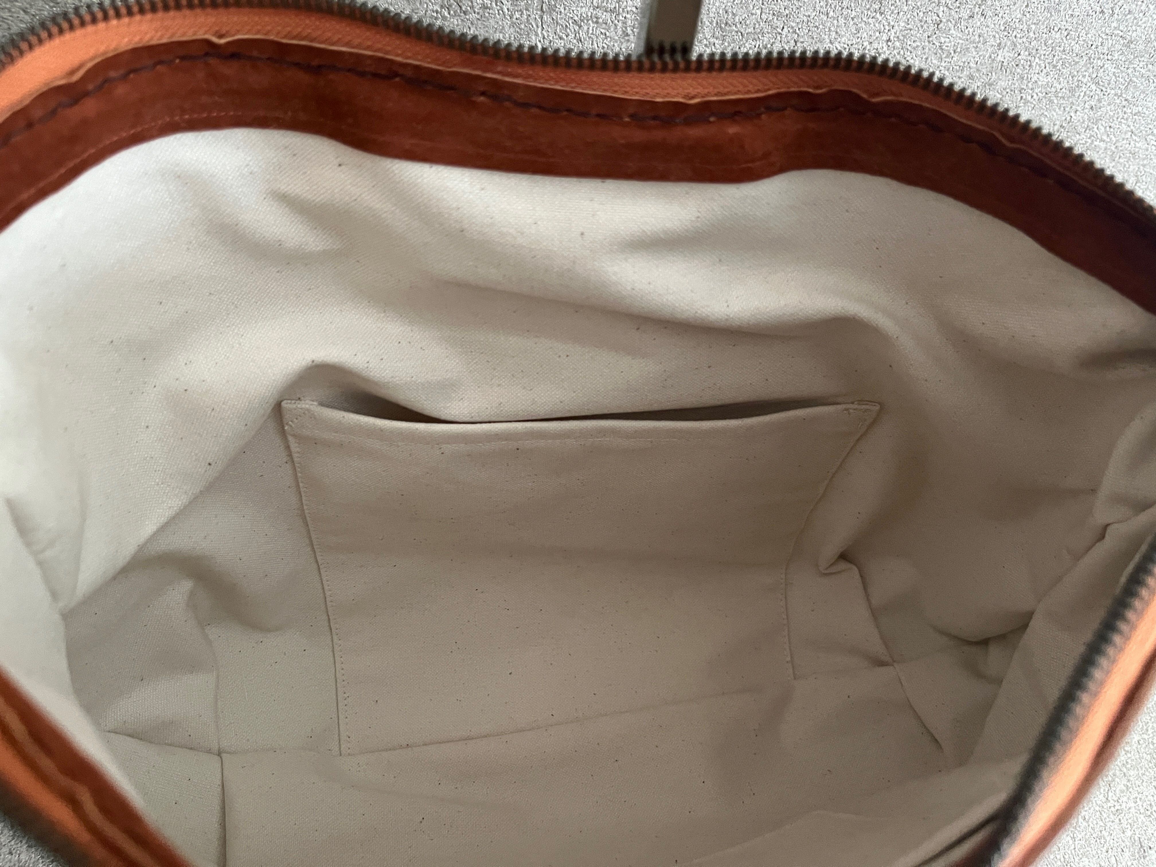 内側は両面にそれぞれ小さなポケットとスマホサイズのポケットをつけた