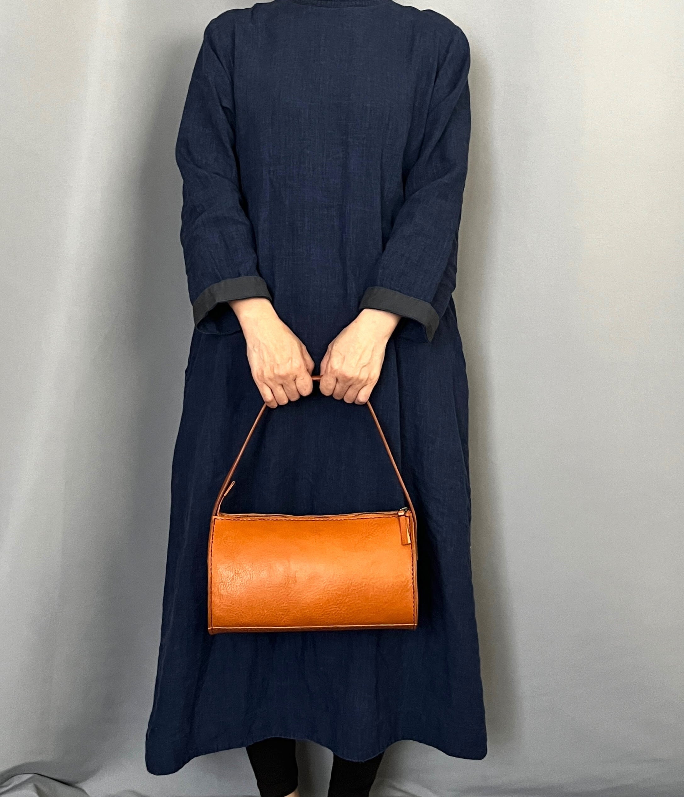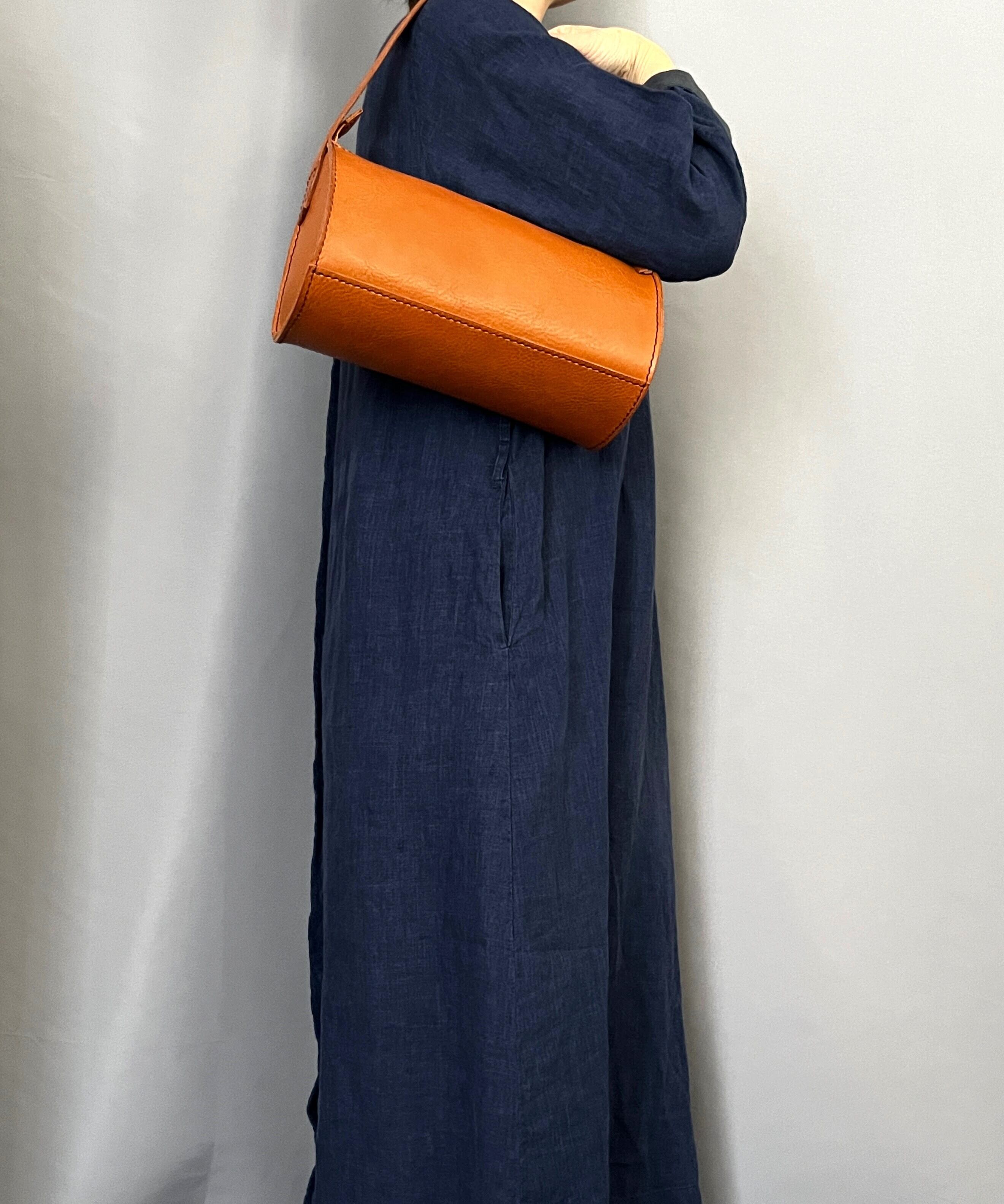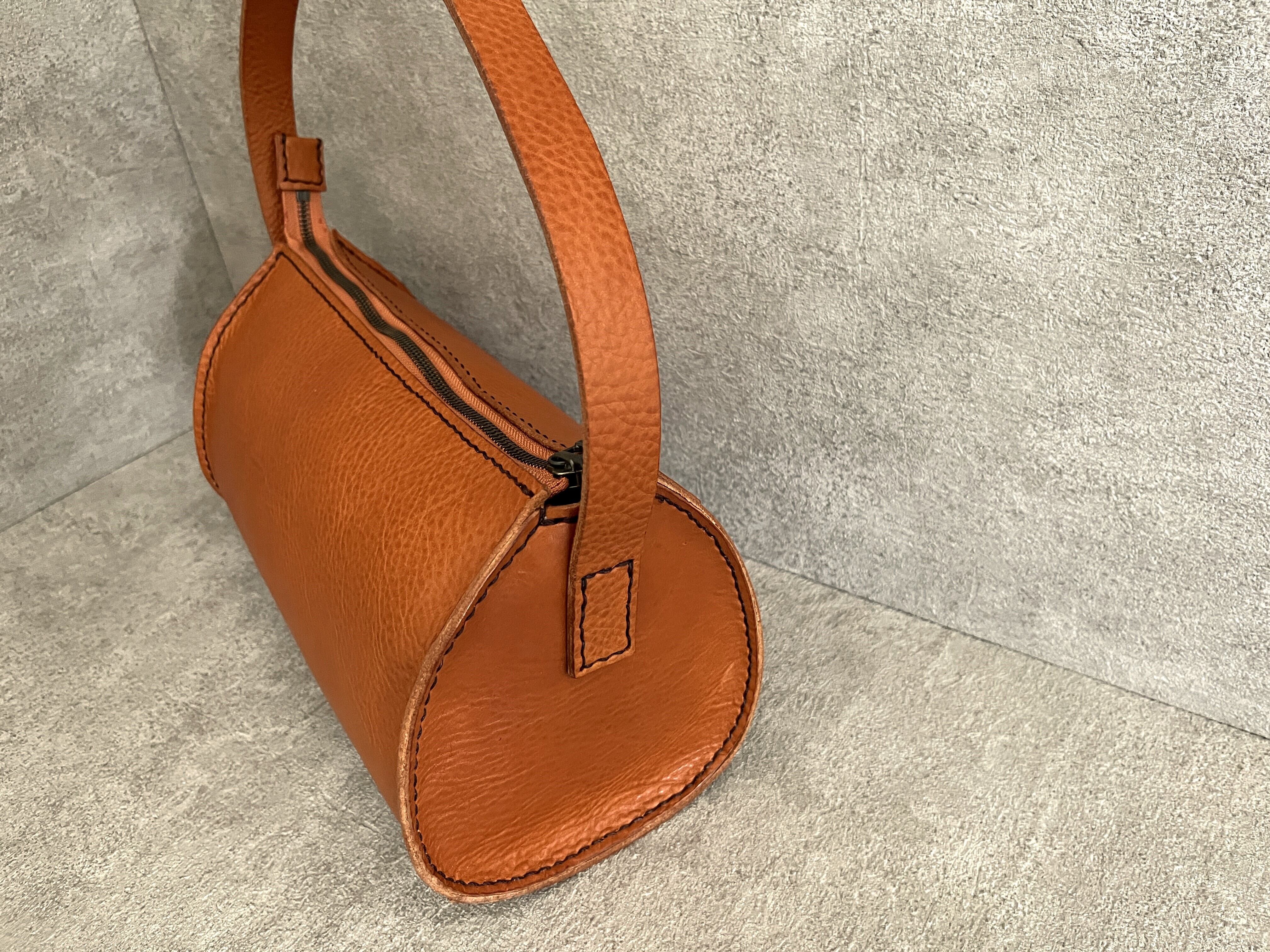 手縫いで作りましたドラムワンハンドルバッグです。