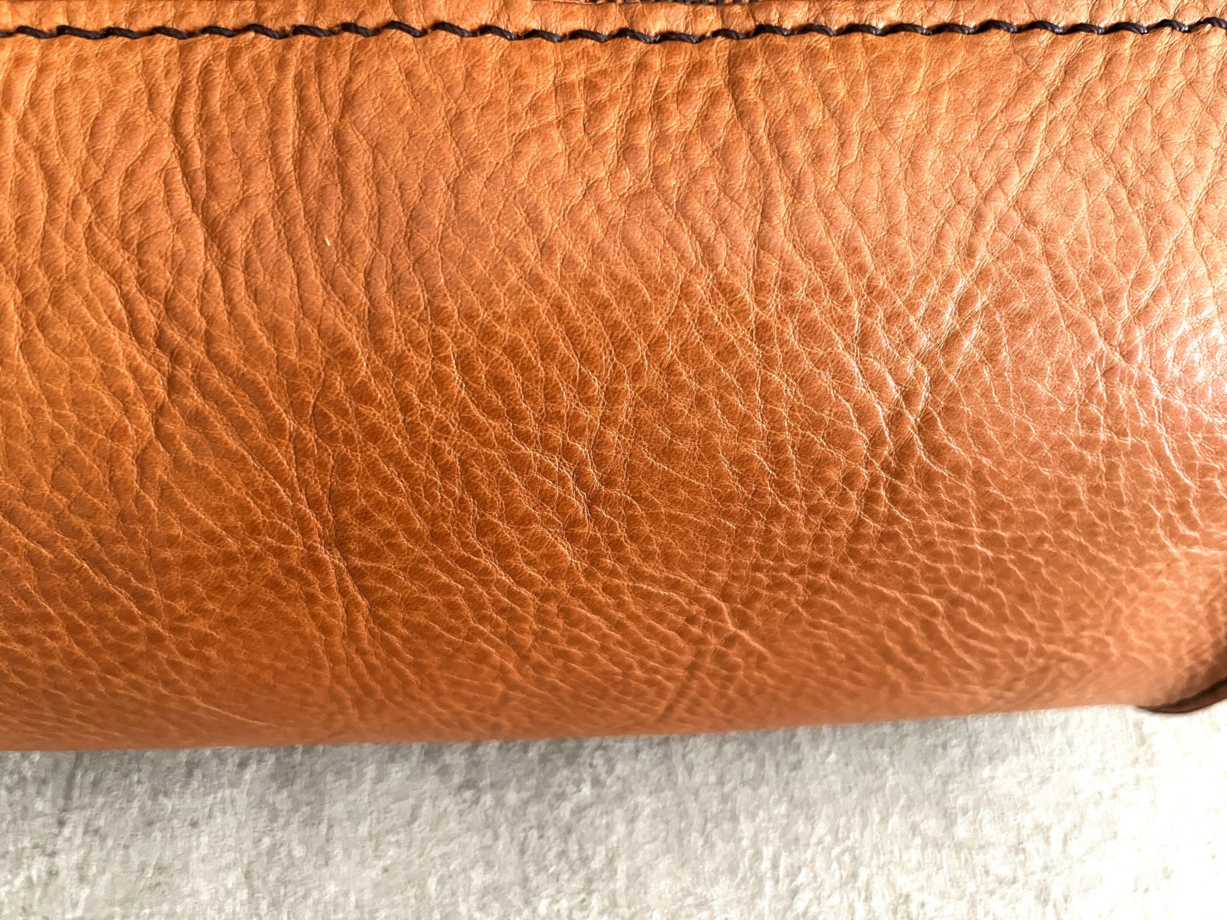 シュリンク加工のイタリアンレザーでコニャック