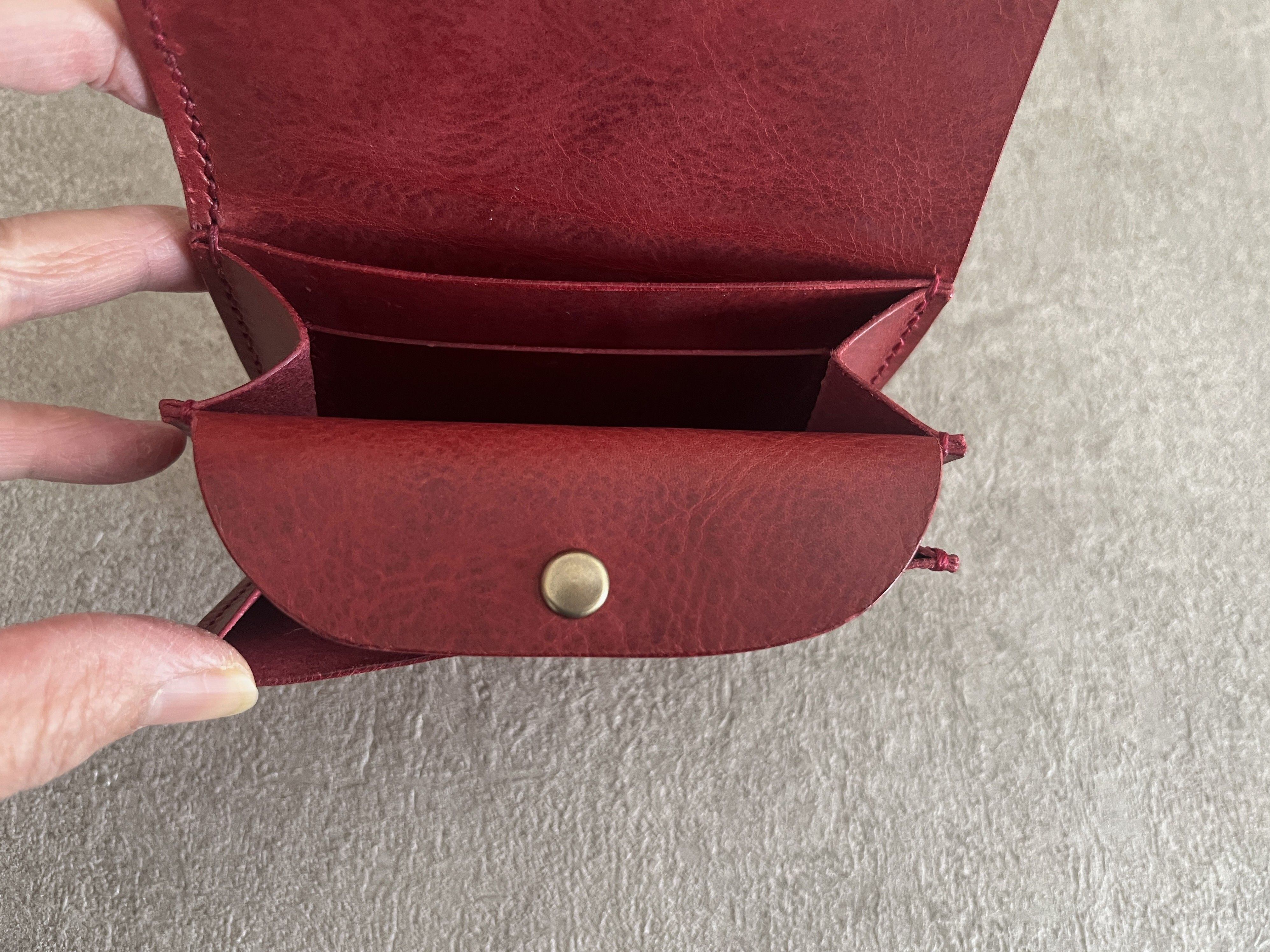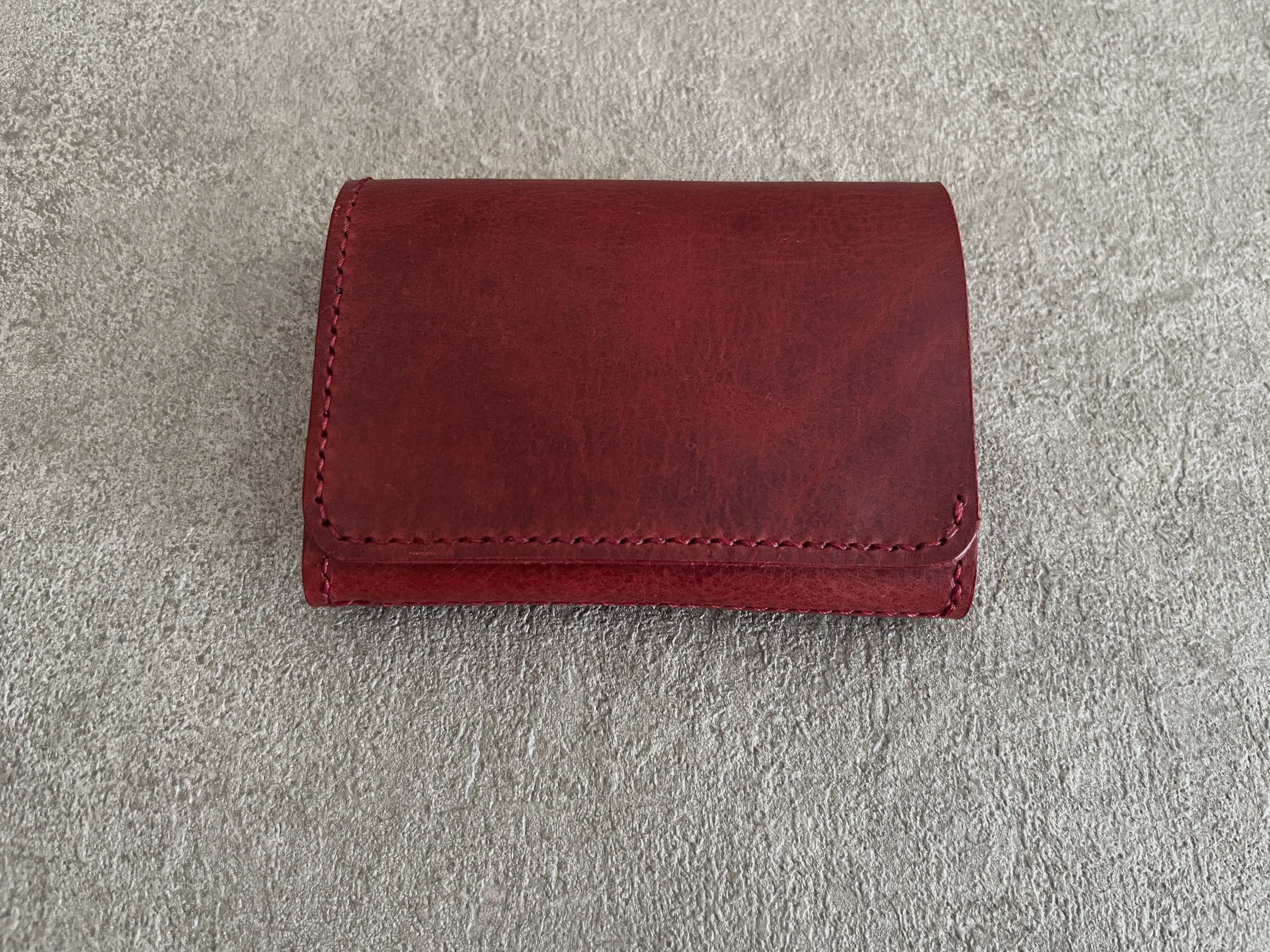 手縫いで作った、ポケットに入るサイズの二つ折り財布です。